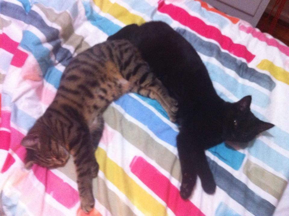 She is also sharing with Benin (see separate listing) and absolutely adores her. The feeling is mutual: they play together and sleep together - after a mutual cleaning session of course! My foster mum loves this esp as gives her time to do this stuff called cleaning!