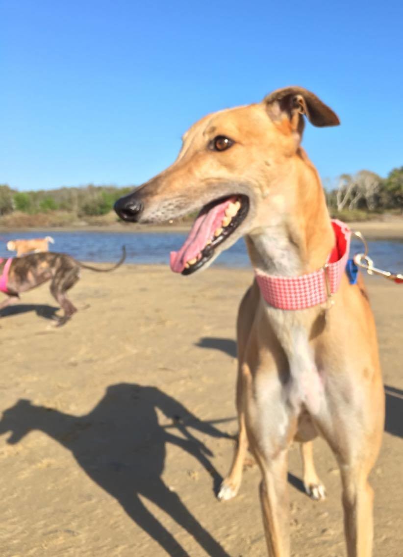 Curly is an impressive specimen of a greyhound – tall and regal, with a beautiful red-fawn coat. Of course, choosing a greyhound is about much more than good looks, and there are plenty of other reasons to fall in love with this handsome boy. Curly is goofy, cheeky and adorable, with the typical laid-back greyhound gentleness. Whether he’s playing with his toys, enjoying a walk, or lying upside-down on a comfy bed, Curly is sure to make you smile.