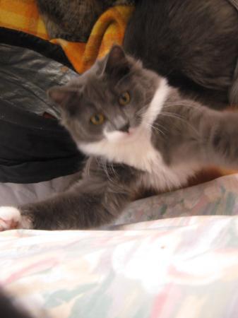 Olga is a gentle, sweet, little girl who loves other cats and people. She loves playing but is a little bit shy till she knows you. She would do well in a household that is not too boisterous. Whilst she is a very pretty girl with big golden eyes, she is shy and gentle, so please consider her personality before deciding that she is the cat for you