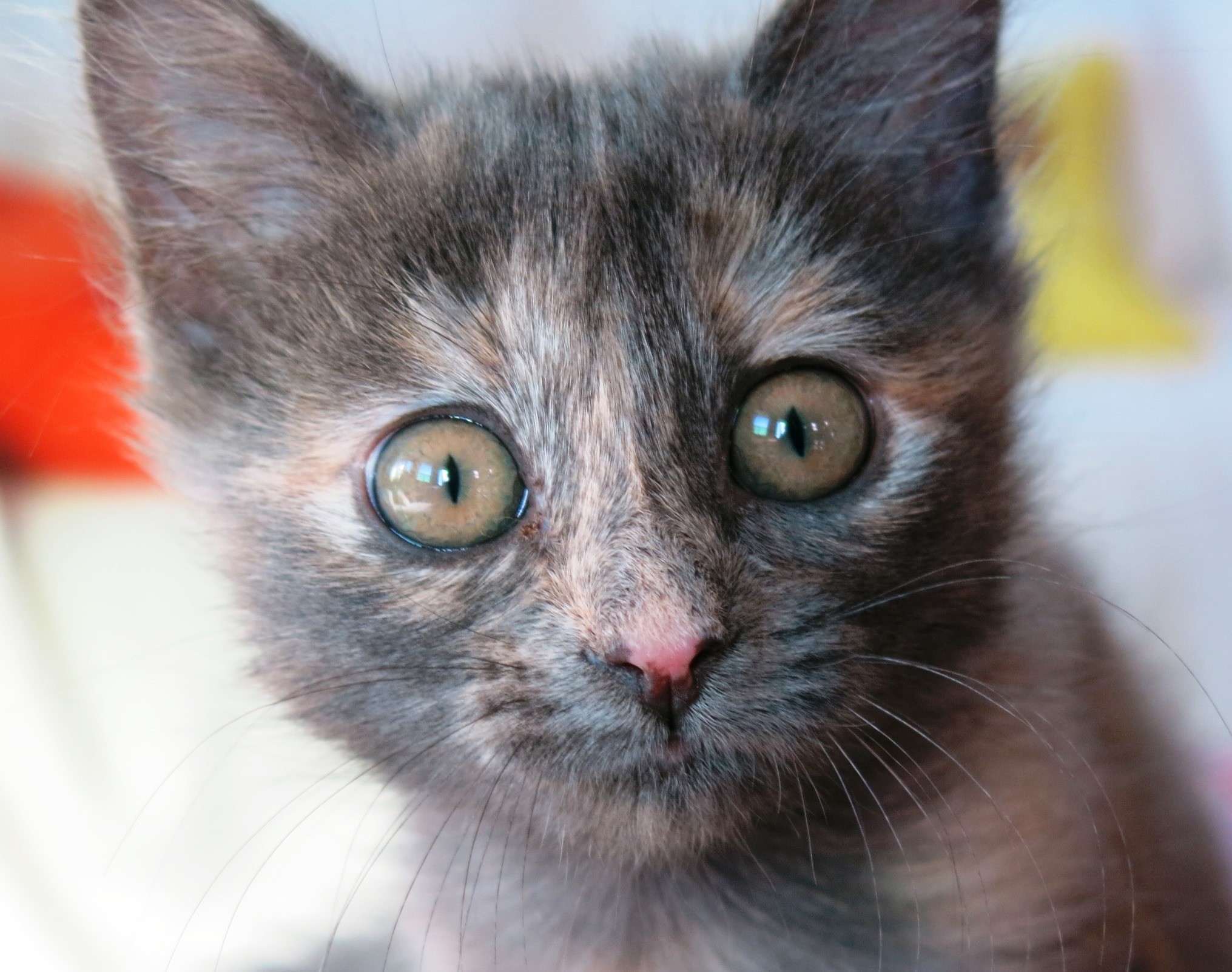 Miss Mimsy - (Blue Cream Tortoiseshell) - She is VERY cute and VERY pretty. She has been raised from a few days old by one of our vet nurses and at around 8 weeks old is now ready for adoption. Very playful, very loving and loves the tinsel teaser's.