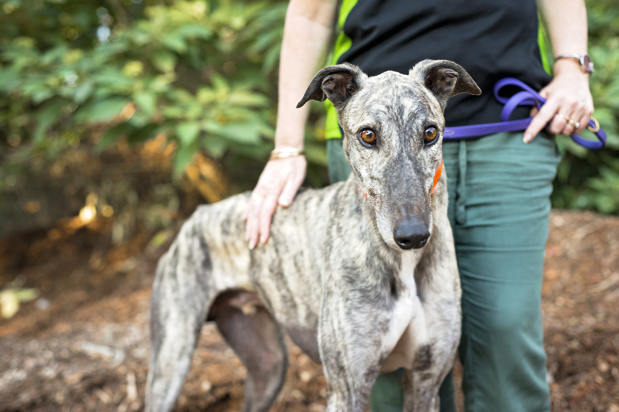 Meet Woogi! This handsome greyhound is looking for a calm home where he can laze about in the sun all day. He has a very gentle nature and loves to show you affection by leaning all his weight against your legs. He loves to share cuddle time with his humans. Like all grey's Woogi doesn't require much exercise and can't wait to share the couch to watch your favourite TV shows!