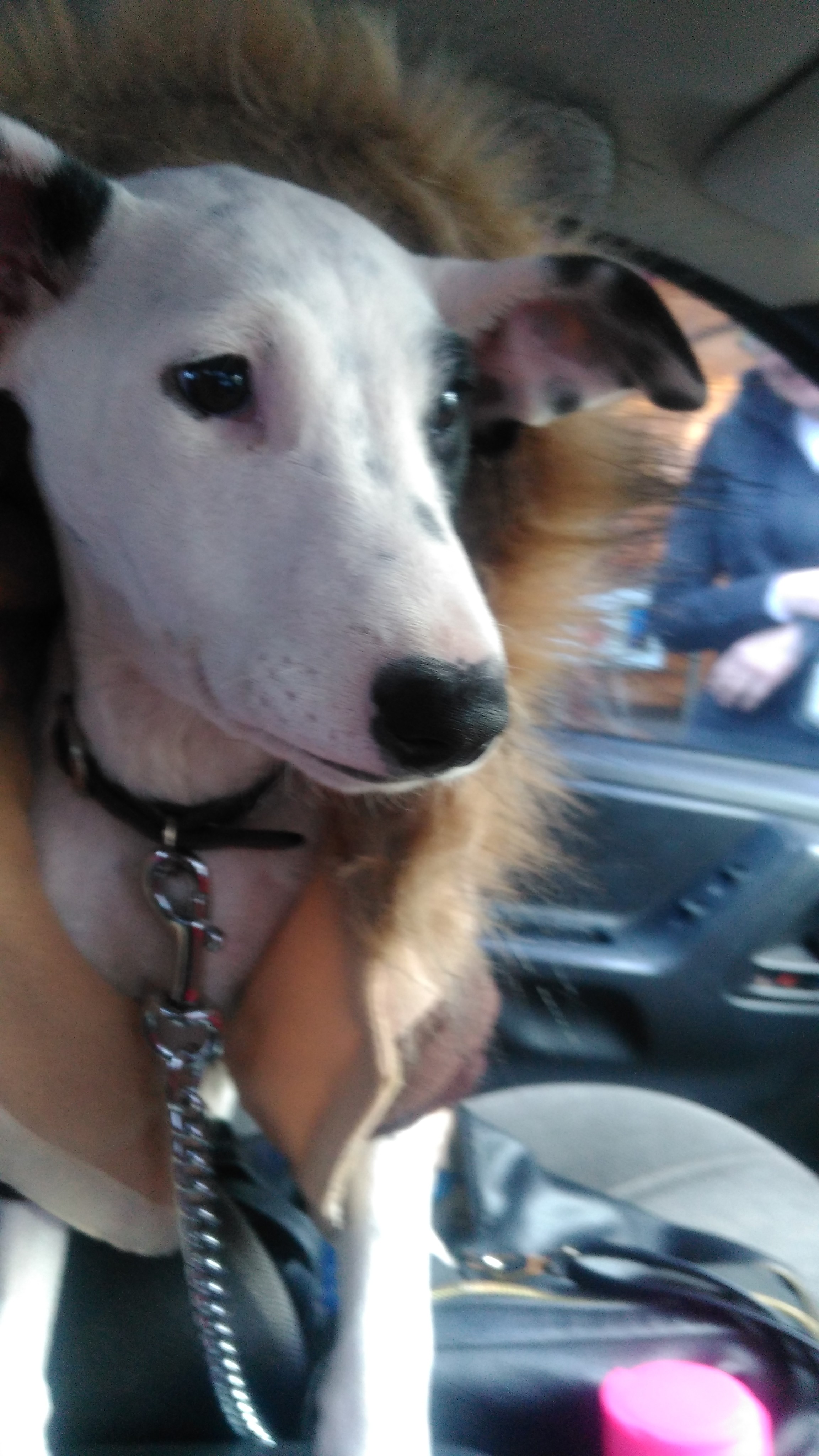 Justine is used to dogs of all ages and sizes and humans so with the right supervision and training she could cope well with children and cats. She does not mouth a lot and is quite calm for such a young girl.