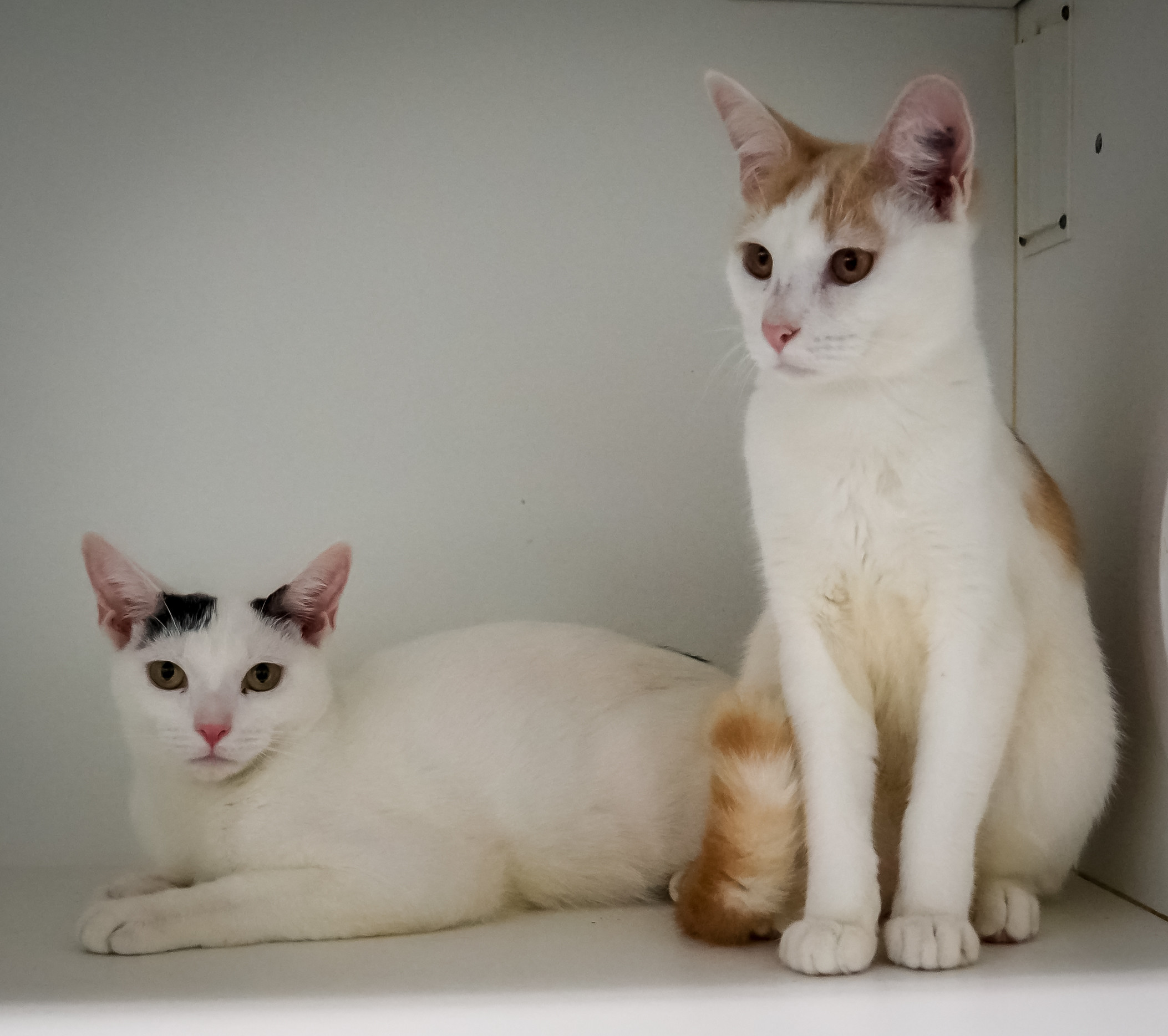Coconut and Peanut are two special little guys who have spent all of their lives together. They were in foster care together where they learnt to trust people and enjoy lots of cuddles and attention. They are both still a little shy in the shelter but come around with time and reassurance. They are looking for a more quiet home where they can both be center of attention and get all of the love and cuddles they deserve.
