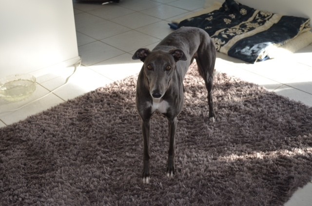 Rascal is a completely different greyhound now, compared to the uncertain dog that came into foster care. With affection from his foster family, he’s blossomed into a sleek, gleaming blue boy, with an interest in everything that’s going on. Rascal has discovered how wonderful it is to be somebody’s pet, and is now ready to find someone he can truly belong to.