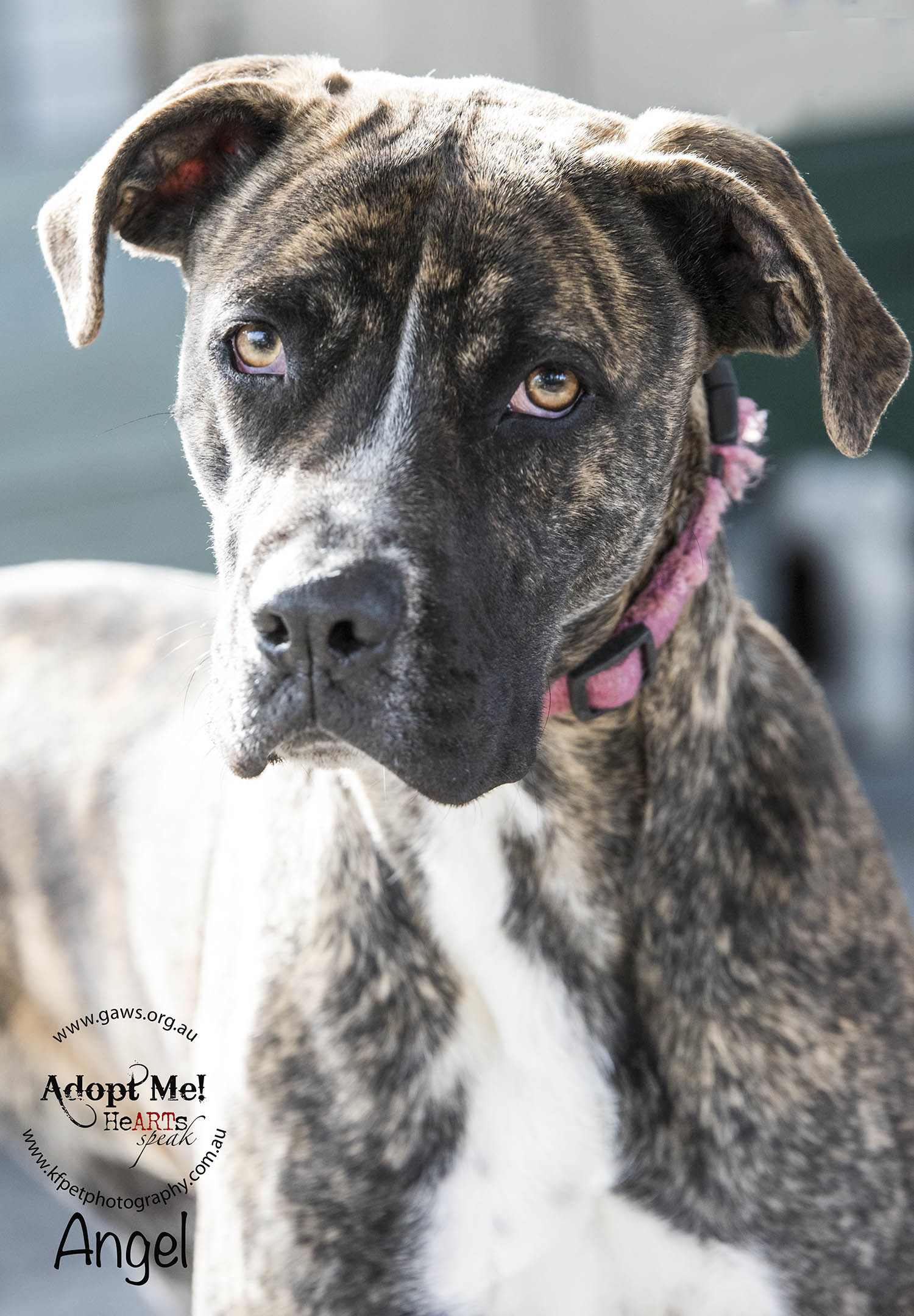 Angel is a big goofy pup still, she has a gentle nature and loves playing with all the other dogs. Angel has bounds of energy and will require daily exercise and will benefit from obedience training.