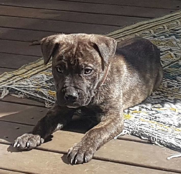 He is a gorgeous brindle colour and has been relaxing in the sun for the short time it has been out in the last few days.
