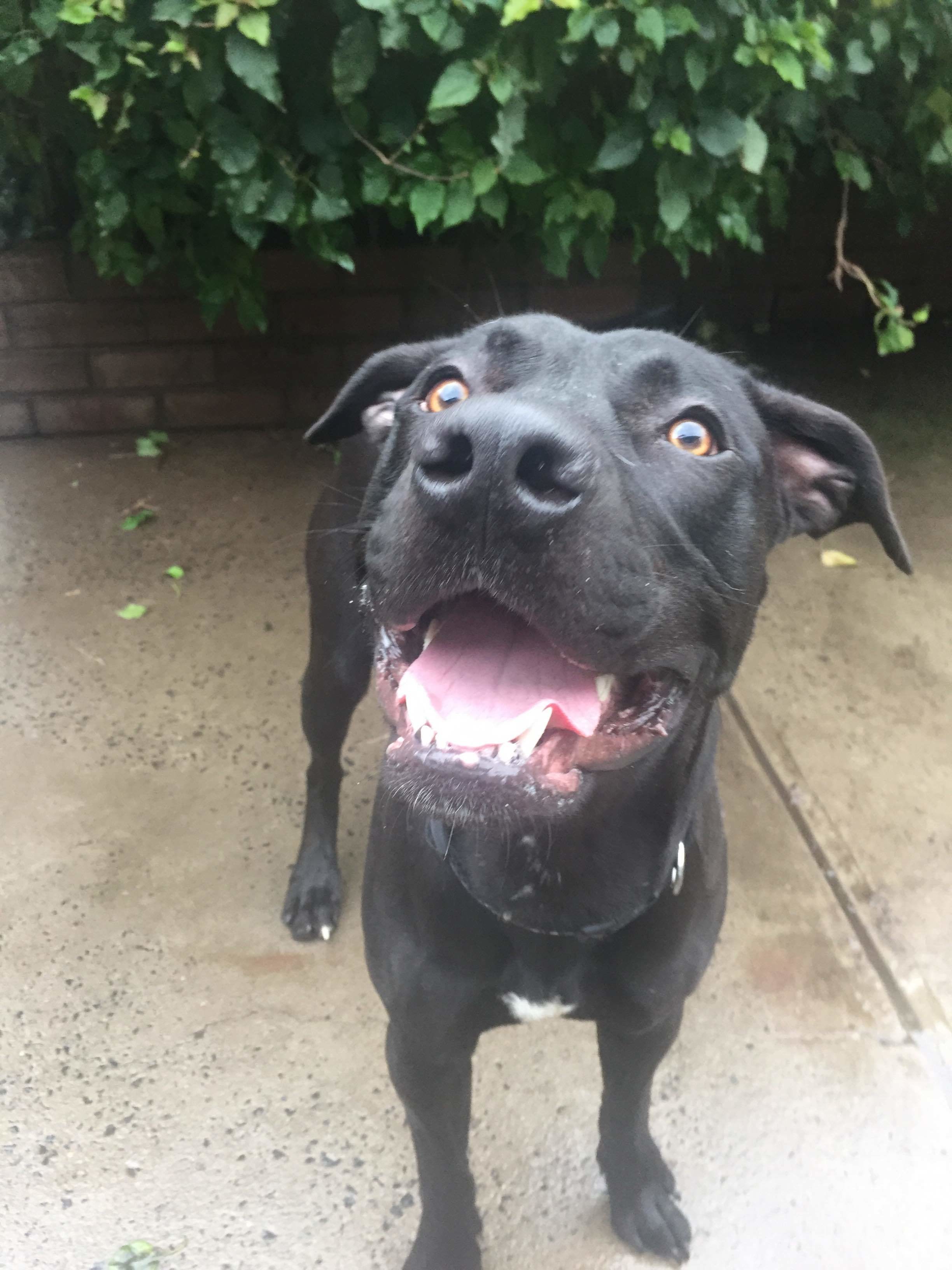 Boomer is an energetic young large breed dog who gets on well with most dogs, but due to his size and exuberance is probably not suitable for a home with small dogs or young children. He has some basic manners, but needs further training to continue this.