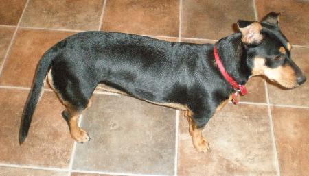 Rubie is a very energetic and playful 10 month old female daschund x kelpie with lots of love to give. She has been de-sexed and is toilet-trained. Taking her for a walk is the high-point of her day. She thoroughly enjoys socialising with other dogs, and size does worry her and so is quite eager and excited on the lead - that is the only department where she needs a bit of training. She is a very affectionate and loving dog and would be ideal for a young family with/without kids or an excellent companion for a single energetic person. It would be great if she were to be re-homed where there is another dog (or someone at home for her to play with during the day). Rubie has a great temperament and would be well suited to a family who has the time for her. She loves to play tug of war and enjoys playing with her various toys. "ps - we will be very grateful if her new owners allow us to have her over for weekends occasionally - or even to help out with dog-sitting if they are going on vacation"