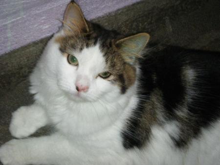 Tiddles was born with a deformed nostril which causes him no pain or problems. He needs to be an indoor only cat due to his light colouring