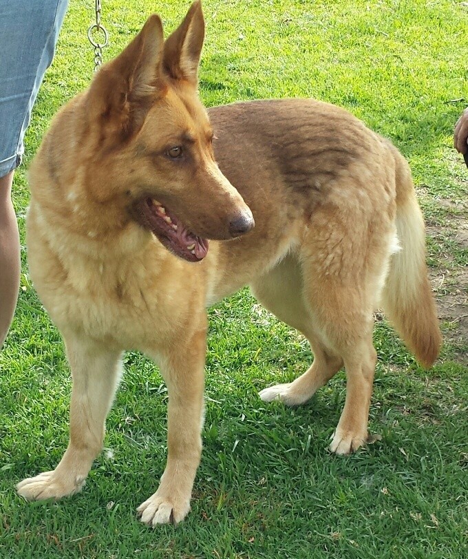 Honey is a lovely seven year old German Shepherd that is now looking for a new home. She is a very people focused and attentive female shepherd who has very unusual coat colouring what we consider to be a "liver colour or strawberry blonde" if she was a human.