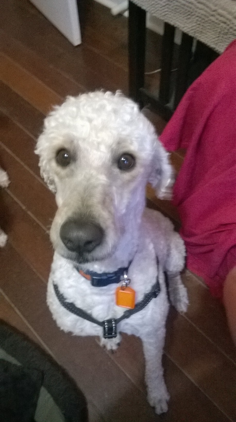 Bella is a Groodle (Golden Retriever cross Standard Poodle). She is super affectionate and loves everyone including kids.Bella weights 17.5kg and her back comes upto knee height on an adult.