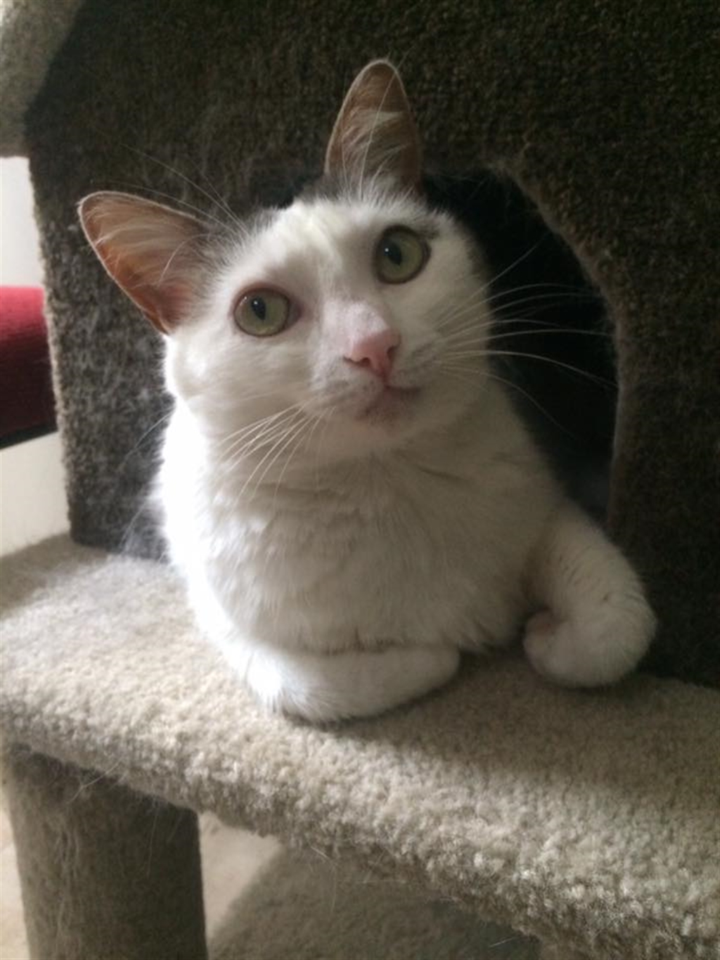 Princess had a hard start to life so can be extra picky when it comes to giving out her affection. She enjoys sitting on your lap, getting scratched behind the ears, and strutting her stuff around the room, so given some extra time and love she will make the perfect companion. She certainly is an enormous personality!