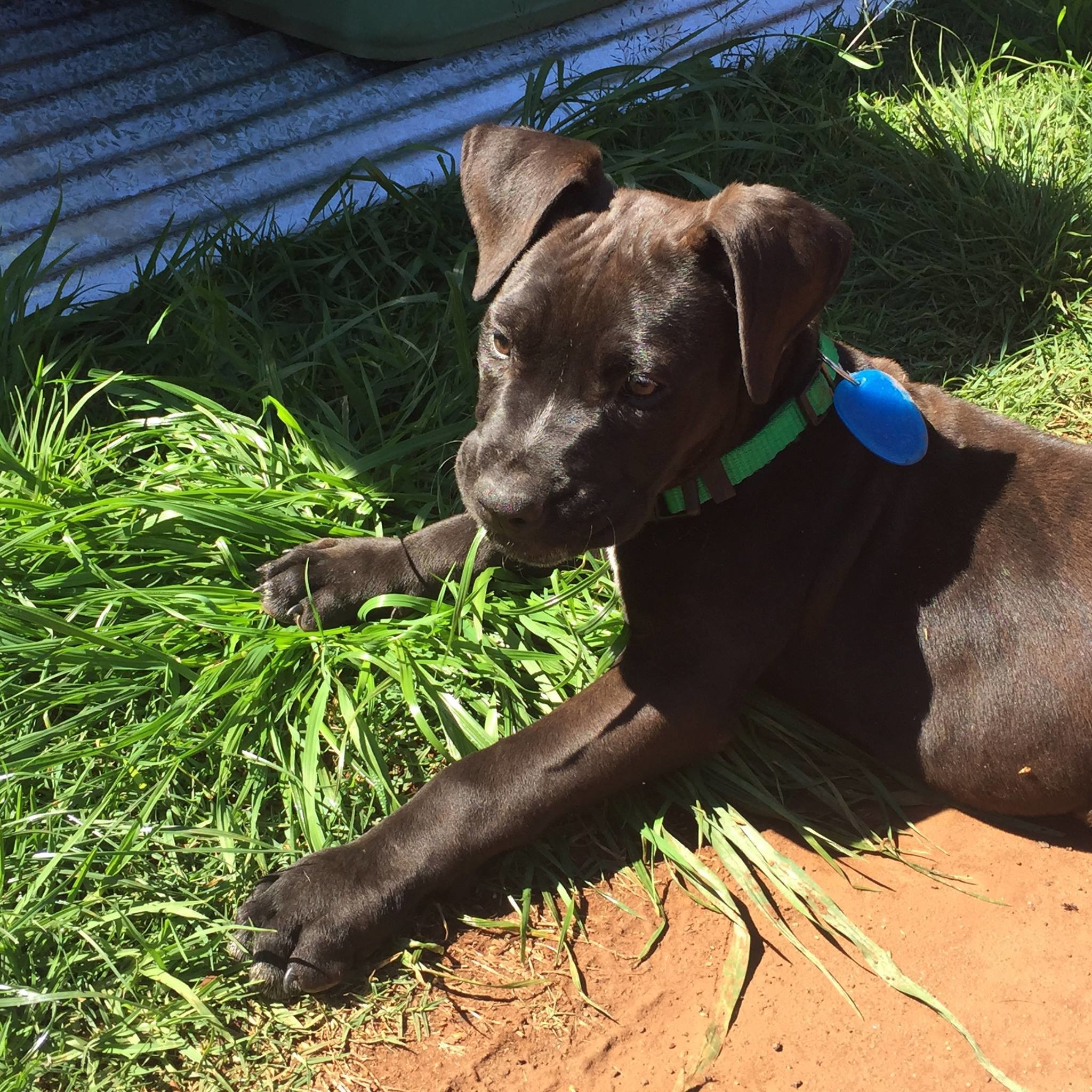 Breed: Mix of Dane, Pointer, Arab, Boxer, Bulldog. Will be a large dog.
