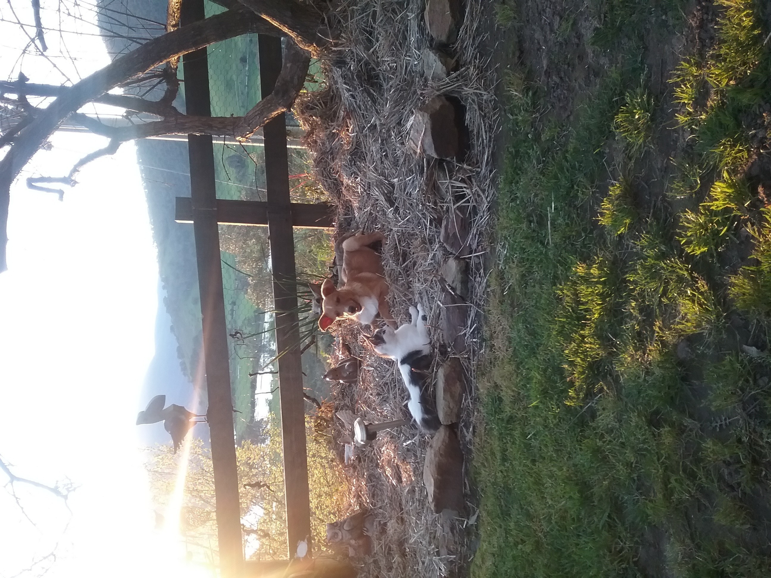 The cats here are accustomed to dogs so arent bothered when he gives them a big smooch.