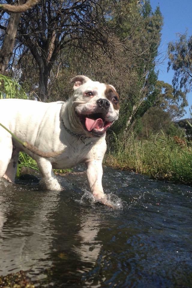 brixton is a big goof ball who just loves a cuddle he has an over bite that adds to his gorgeous looks he seems to be good with other dogs brixton came to us a week ago but the owners didn't know he is deaf he knows some hand signals like sit he is ok on the lead he loves his humans he will cuddle you for hours if you let him he has papers so he is pure bread aussie bulldog he really needs a loving family who will spend time with him and treat him as apart of there family or best friend
