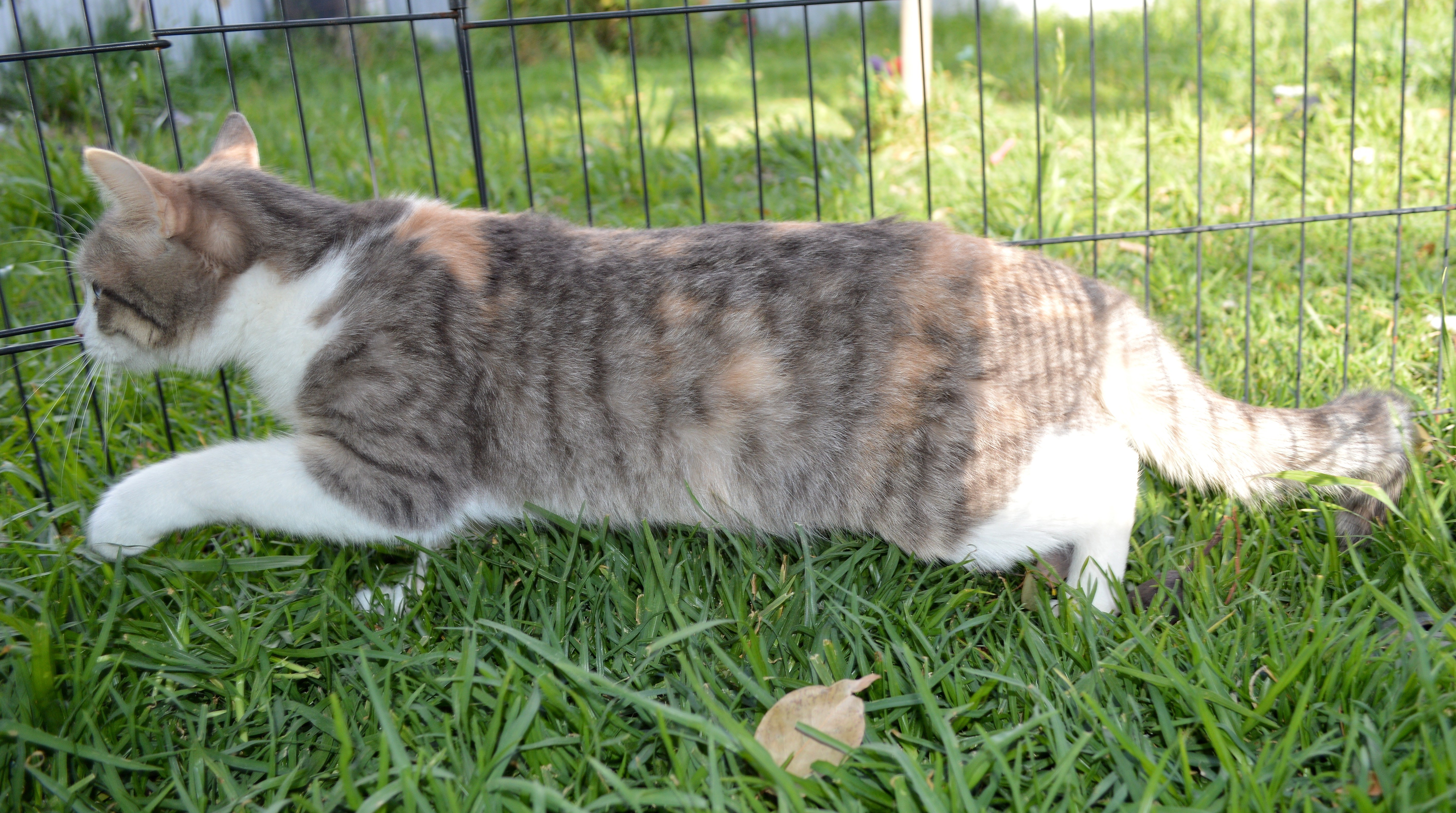 Heidi is one of our beautiful mumma cats. She is only a baby herself at 10 months old. She came in to care mid-late August with her 4 fluffy boys. Her kittens have now started to move on into their new lives, and its time Heidi does too.