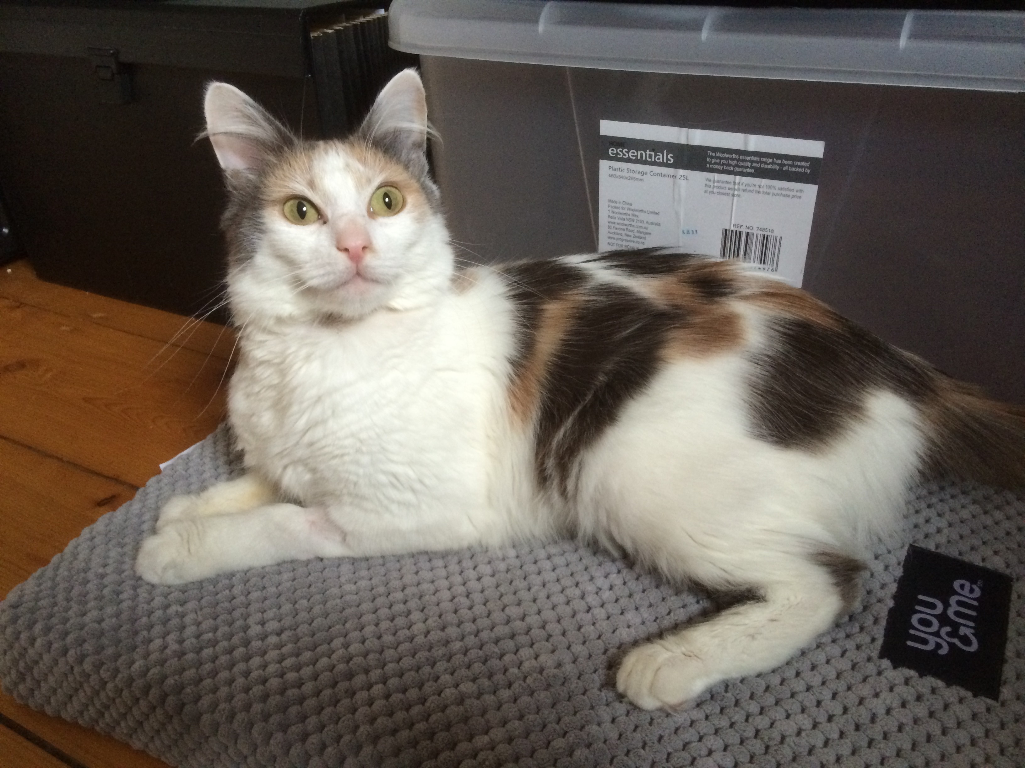 She was extremely underweight and malnourished when she arrived. Now her kittens have moved on she is finally beginning to gain condition.