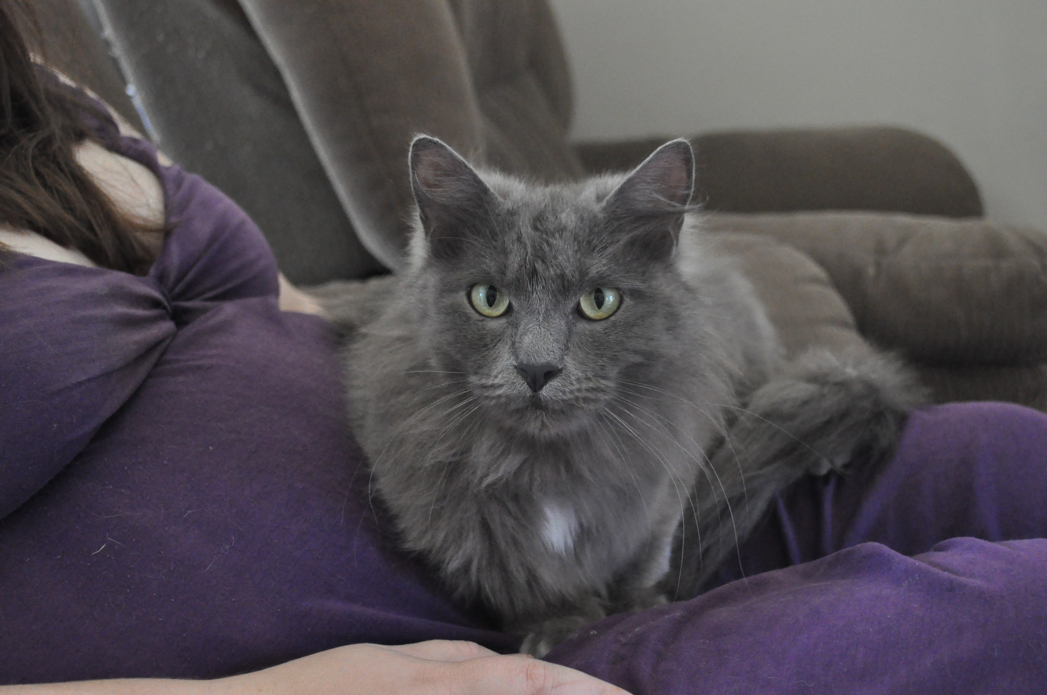 Bear is a very loving cat he likes to be on the bed with you and he also enjoys a cuddle. He would best suit a home with no other aminals and older children as he scary very easily other then that he is a very loving cat that will bring a lot of love to his new owner.