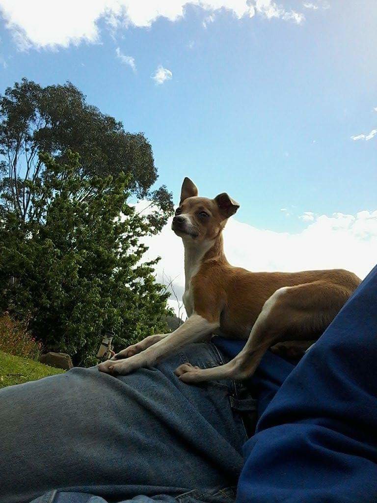 This girl is said to be chihuahua x either whippet or Italian greyhound.