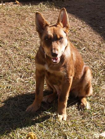 Toby is a mild mannered, a little timid young pup, he does not jump up, he will bark if he hears a new strange noise or if someone comes to the door. Once you have won his confidence he will follow you everywhere, staying close by but not in your face,  he just wants to be there. Toby has spent most of his life chained up and has not had a chance to be a puppy, he would love to find a home where someone would love him, teach him to trust and he would love them back in return. He is fine with kids, dogs and other animals. He arrived full of fleas and worms with an abcess on his neck from the chain. All has been fixed and he is much more comfortable now. He needs to go to training and learn to sit and stay. He loves to play and is learning about toys and balls etc. He is de-sexed, micro-chipped and immunised and ready for a home of his own