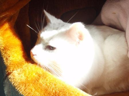 Reasonably uncommonly, snowy is both pure white and not deaf. He is a bit of a shy fellow, more than happy to keep to himself in a warm bed, but is actually quite cuddly if you spend a few minutes introducing yourself first. For those he has learnt to trust, snowy is a loyal companion, always happy to leave his bed to cheer you up. With his pale complexion, snowy would be best suited to an indoor home, to be kept out of the sun. He would prefer a calm and quiet lifestyle
