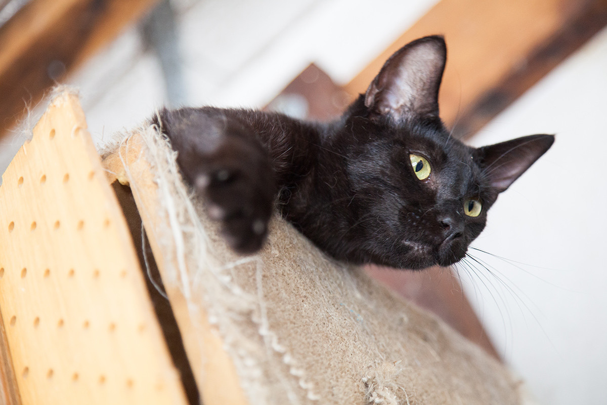 Thor and Trixie are a gorgeous pair of young cats. They are very affectionate and love to be picked up and cuddled, but are also always ready for a game. They are gentle when playing with people making them suitable for a family with children. Both are quick to learn, litter trained and well behaved. Trixie is a sweet girl with thick soft black hair and loves to play with all toys, especially if they have bells or a rattle. She is quick to purr and an affectionate and chatty girl with a delicate miaow to greet you. Thor is an adventurous boy with short black hair and an oriental look. He is a happy adventurous boy with an approach that never fails to make you laugh. He is the first to discover or invent a new game with a quick purr that sounds like a motor and head rub between activities. Thor greets you at the door ready to say hello. Both are desexed, immunised and chipped ready for their new homes.