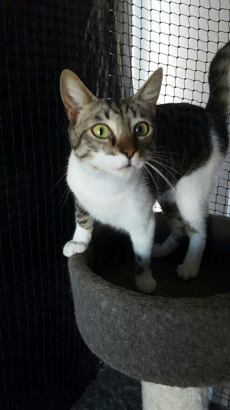 Glenda is a member of the G-Team who arrived in the beginning of March this year, they had been found in someone’s back yard and they had no idea where Mum was and were not able to keep and look after them either so to Happy Paws Haven they came to get hand raised. There are four kittens, one black and white, one tabby, and two that are tabby and white. They did not take long to learn to eat on their own and were soon playing as kittens do. Like all kittens they have wonderful affectionate mischievous natures. They gave been desexed immunised and micro chipped ready for their new homes.