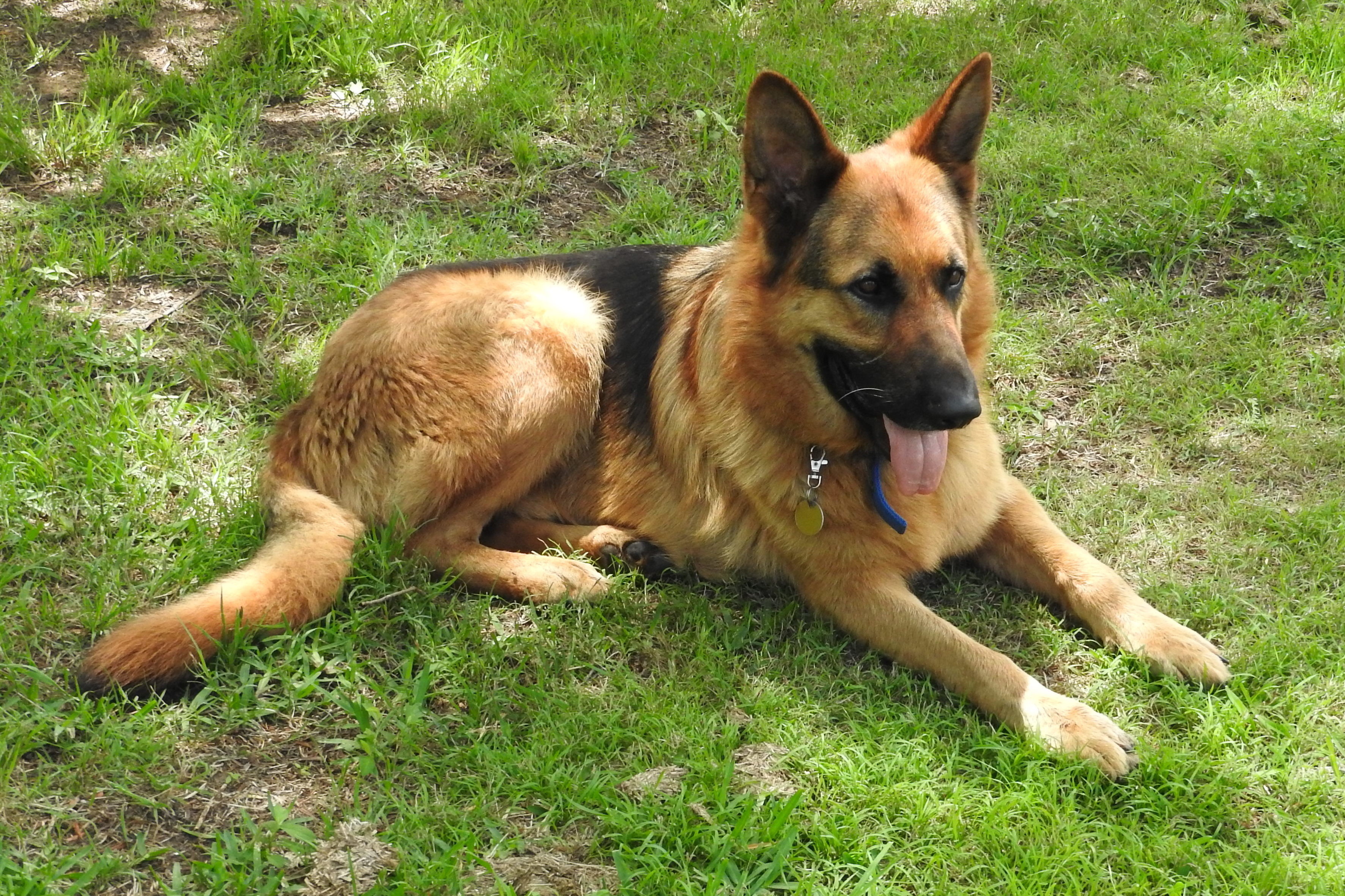 This gentle and somewhat shy male German Shepherd is called Rhys and has come from a local animal shelter into our care.