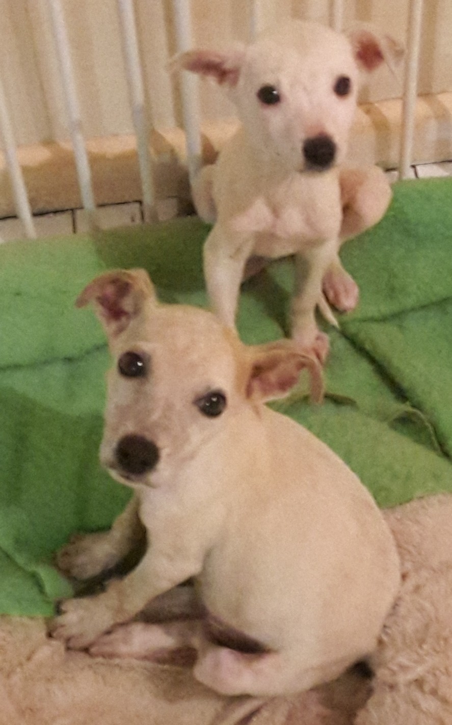 Clancy gets along well with his sister, Honey, who was surrendered at the same time, and his two (much larger) foster sisters. Cats, rabbits and other small animals are an unknown. Clancy’s father is a Bull Arab and his mother is a Cattle Dog. Neither parent is very large so we are predicting that Clancy will be more Cattle Dog size.