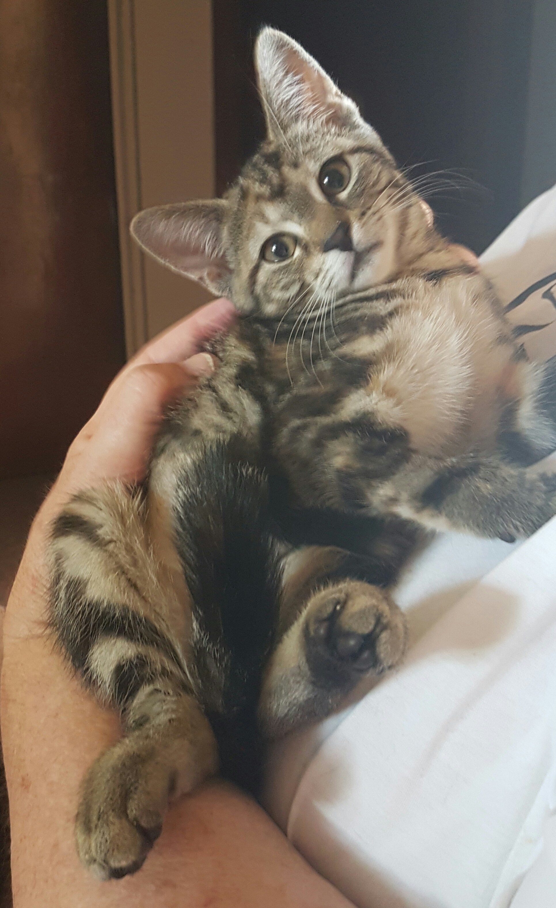 Tess is a shy girl at first, but since being with me (for less than a week) has quickly become my favourite. Shes the most confident and affectionate of her siblings. She was quick to "test the waters" with us, and has been lapping up all the attention since. Shes a very sweet young lady who is just looking for a nice, warm home to call her own.