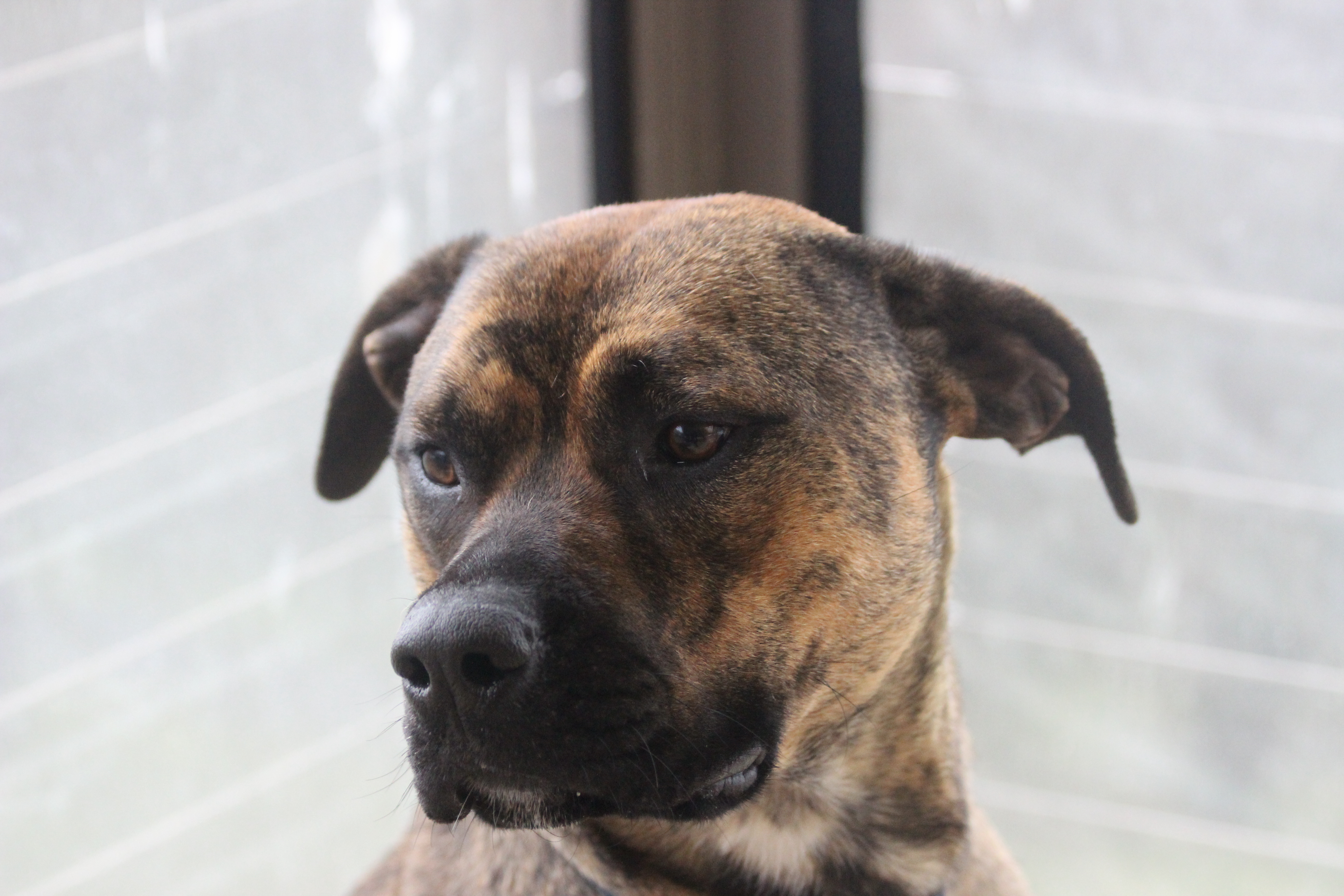 Brock was another dog left unclaimed at the pound. He is a Staffy x Huntaway, and is about 2yrs.. At the moment he is in care with other foster dogs and gets on with them all. He does show interest in horses and rabbits etc so I wouldn't trust him off lead not to chase if he sees one.