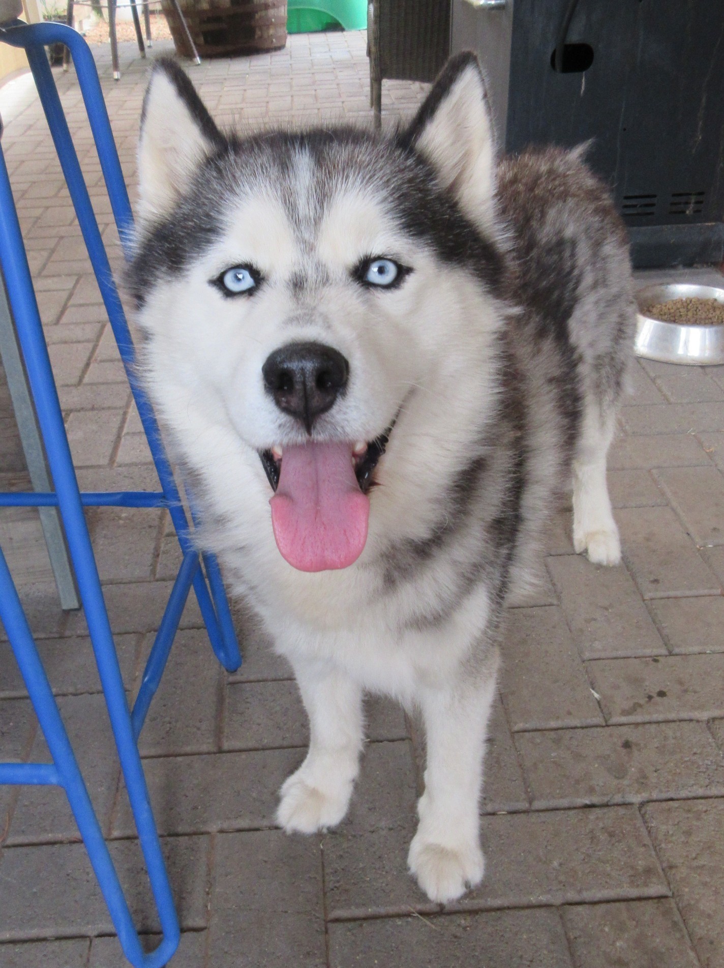Siberian Huskies are an active, highly intelligent working breed, so keeping them stimulated is a must – Shadow loves to run so he’ll require a good-sized yard so he can keep up this fave pastime. He’s not a chewer though will dig himself the occasional ‘husky hole’ to lie in and keep cool and he will need a doggie pool as he does like to splash about during the summer months. Shadow can be a fussy eater – he likes his dryfood super small and has been known to steal the cat’s kibble rather than eat his own.