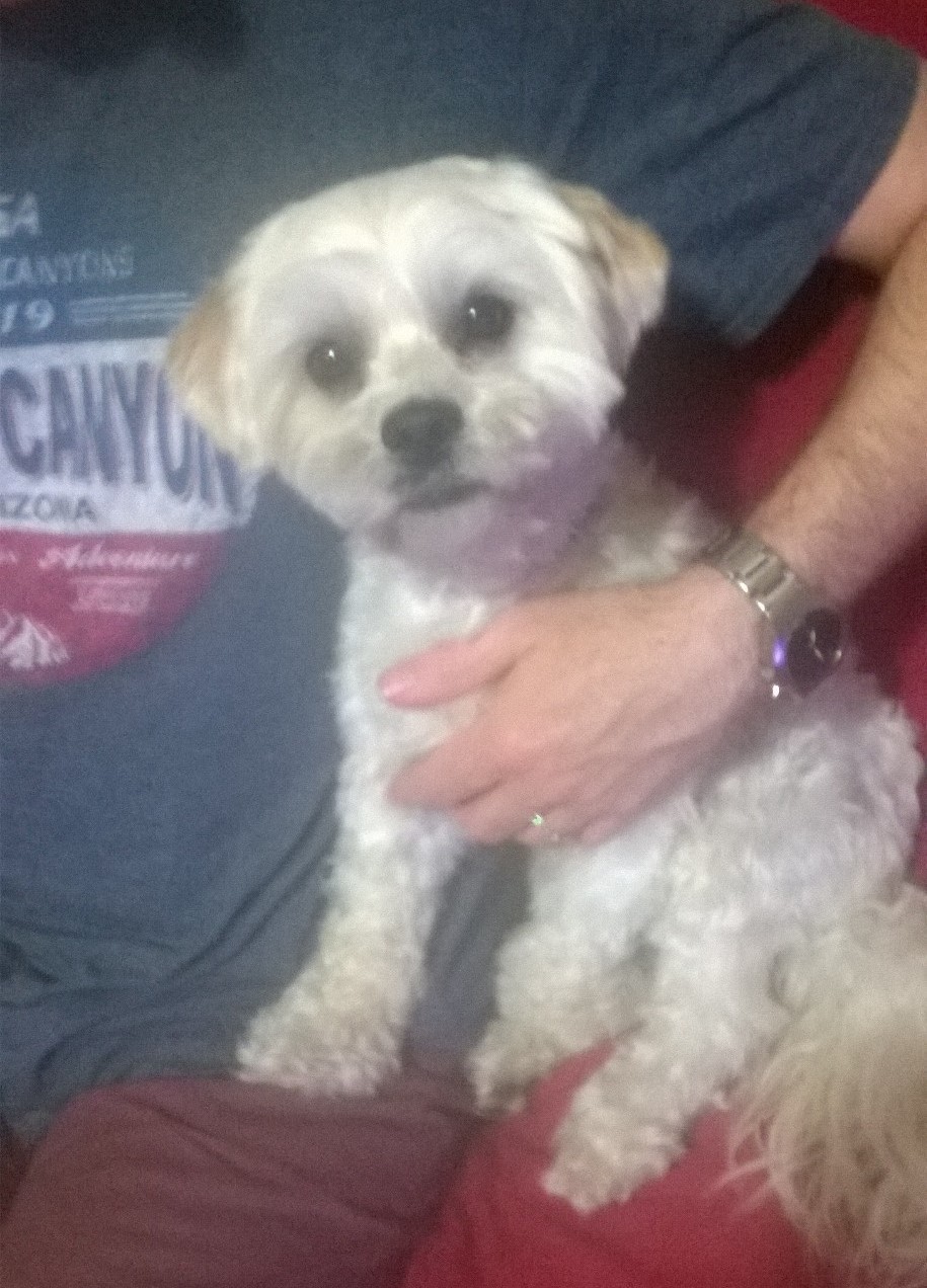 Sunny weights just over 6kg.His mother was a Maltese crossed with a Shihtzu and his father was a Toy Poodle.Sunny has a coat that does not shed hair so is suitable for people with allergies.
