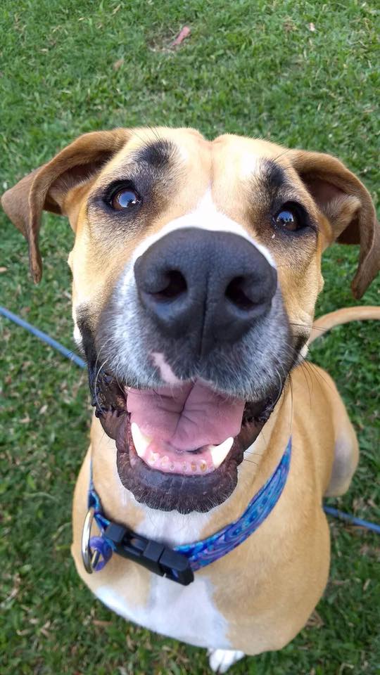 She is loving life and thoroughly enjoys playing with the kids or going on walks. Audrey has hip dysplacia but this is easily managed by keeping her weight under control and short gentle walks. No medication is required. Audrey would love to be an only dog that can spend her time hanging with her humans, giving out kisses and playing ball in the back yard. She would be open to meeting a large calm male dog, so long as they don't steal all the kisses. Please don't let the Great Dane part of her profile frighten you, she really isn't that tall and is a lot more coordinated and agile than a dane. She has the lovely short firm coat of a dane though. Audrey is located in Heathwood, QLD (near Forest Lake)