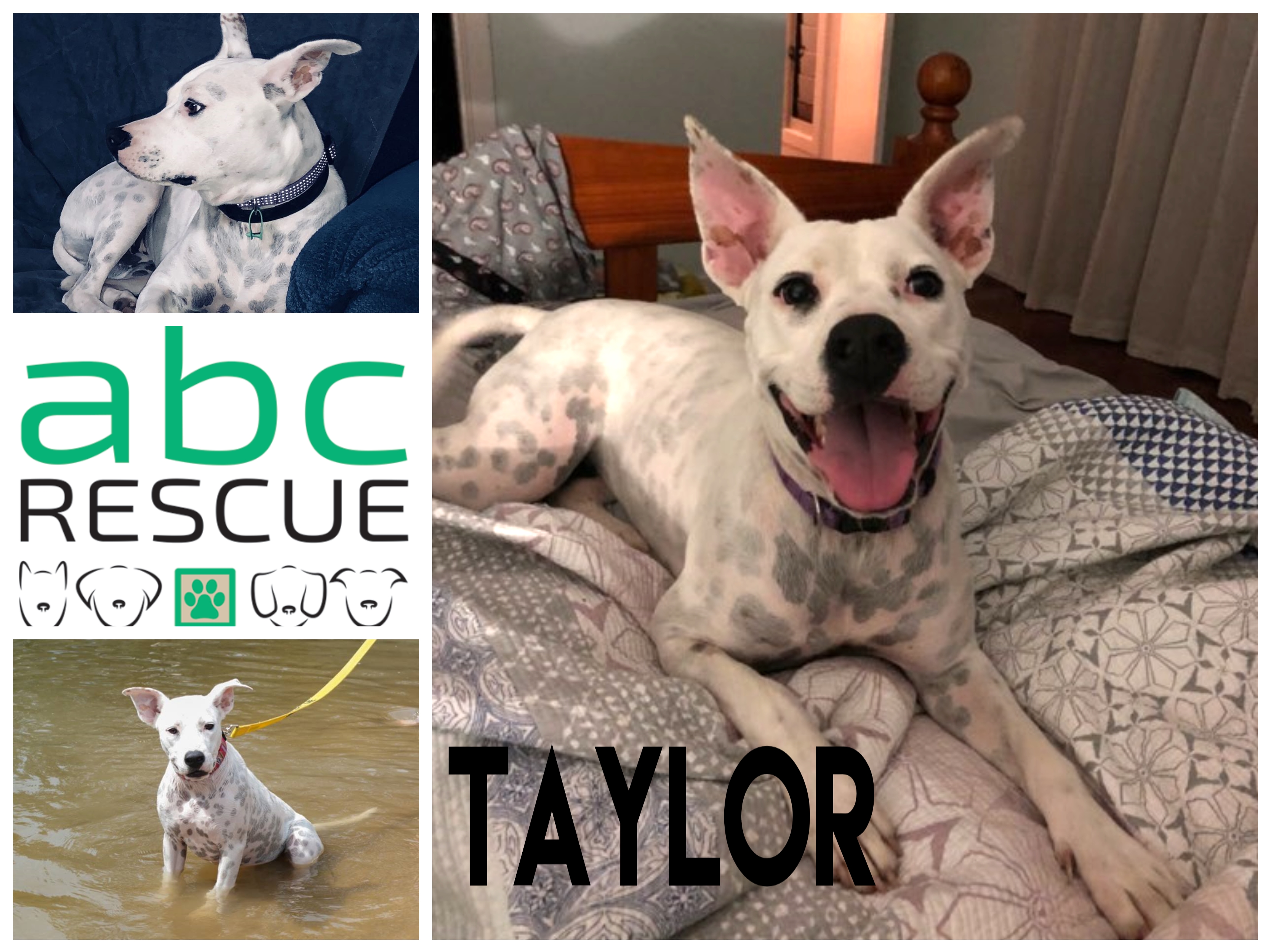 Taylor was found as a stray, so she does have some issues with resource guarding – she is particularly obsessed with food, but her foster family has been doing lots of work with her, and she can now sit and wait for her command before she eats her dinner. Her manners are getting much better, and she can also sit and lie down. She’ll need a family happy to continue her training with her.