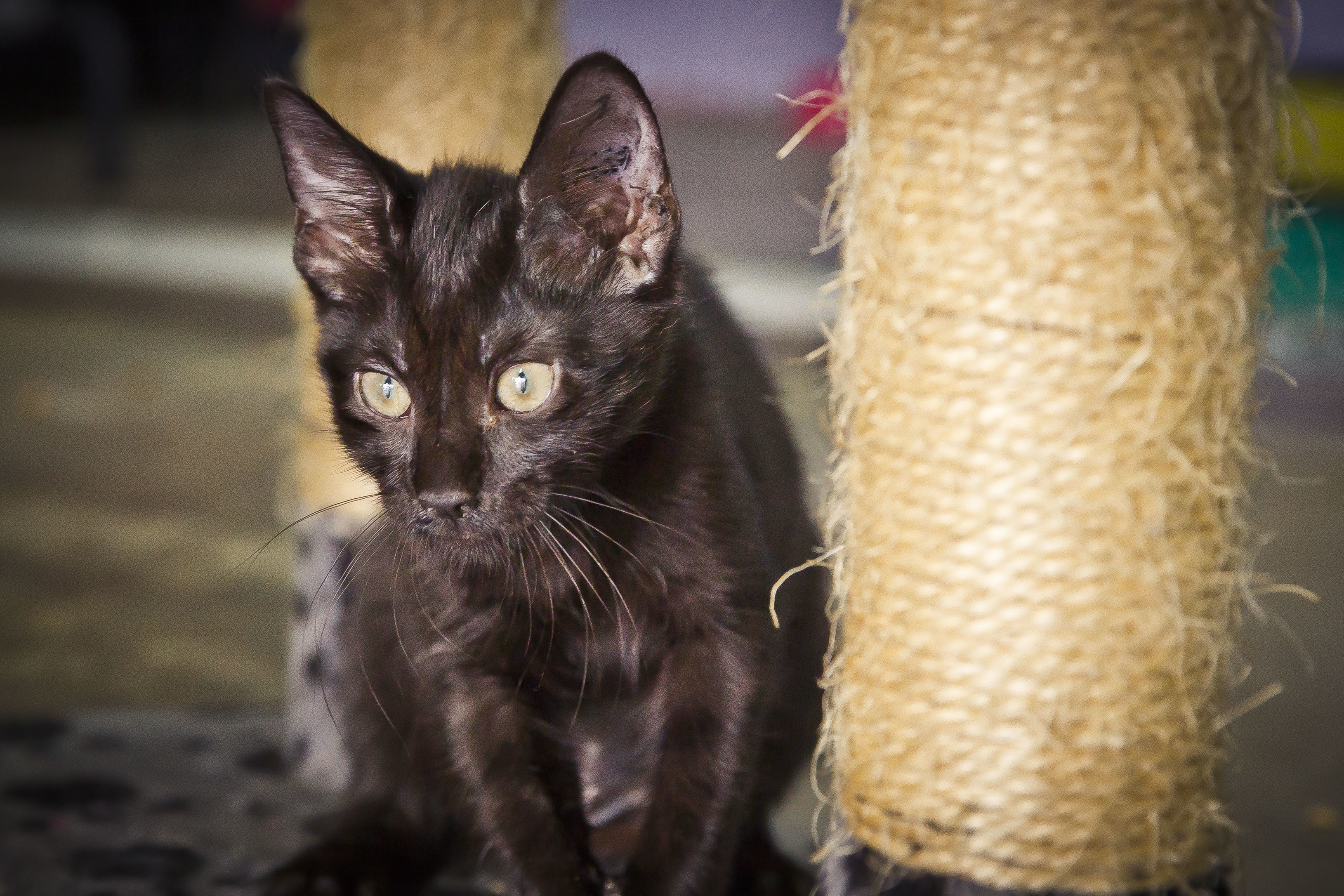 Hello my name is Hedy. I am a sweet little ball of fluff looking for a new furrver home. I love playing with my humans and pull off the ninja kitty disguise rather well. Those feathers will never see me coming! I also love things that jingle. After a hard day of play I love to curl up with my humans on the couch or even at the end of the bed.I am also desexed microchipped fully vaccinated flea and wormed so the only thing you need to worry about is playing and cuddling with me all day. So if I sound like the purrfect kitten for your family then please come and meet me at the shelter today.
