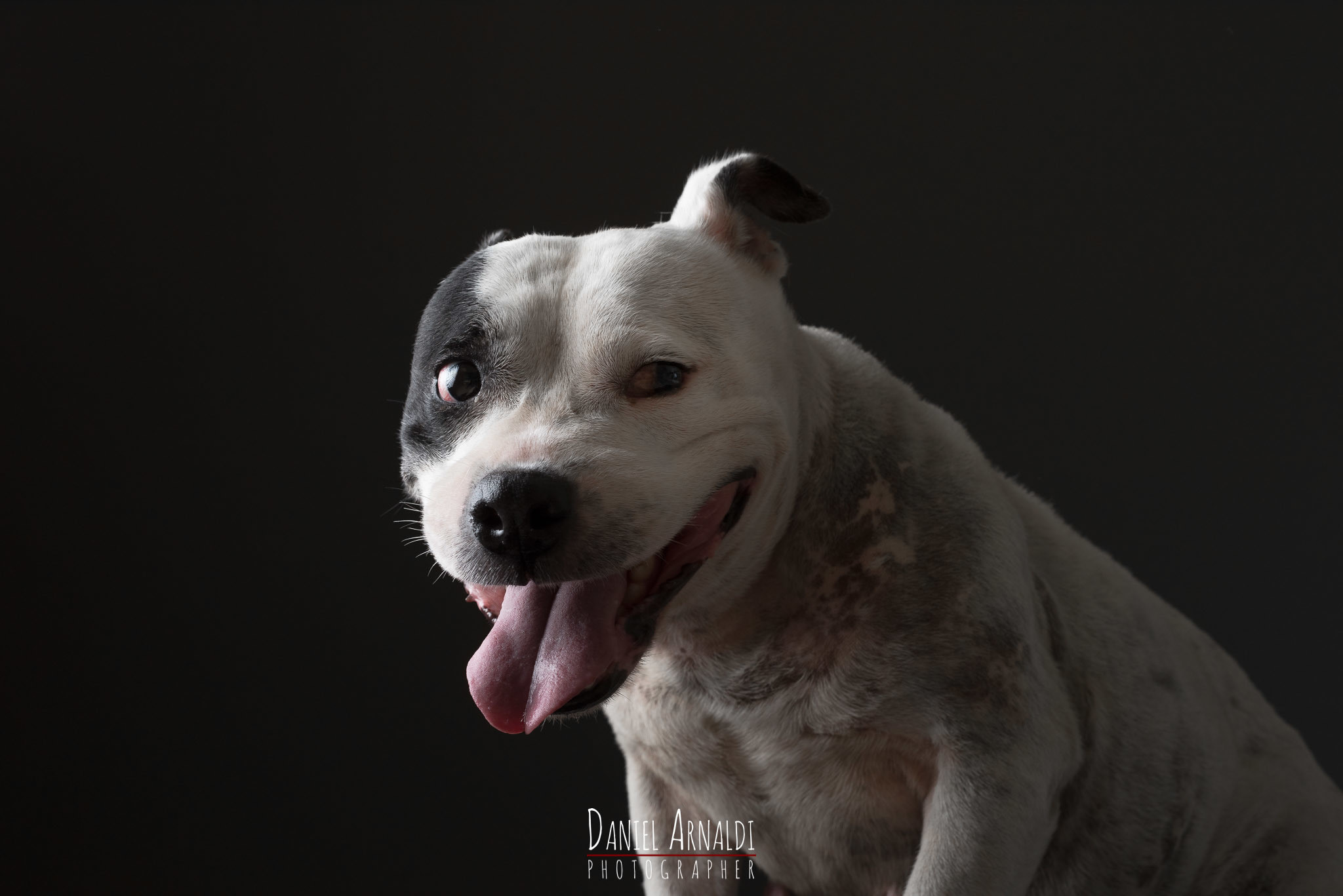 Giselle is a georgous ball of Staffy love! This poor miss had joined us in pretty bad shape but is slowly improving. Giselle so far seems to be social with calm dogs and cats. She loves people and enjoys every bit of attention given to her. She appears to be a calm, placid girl and although she loves attention she is not a needy dog. She is happy to just laze around on her bed.