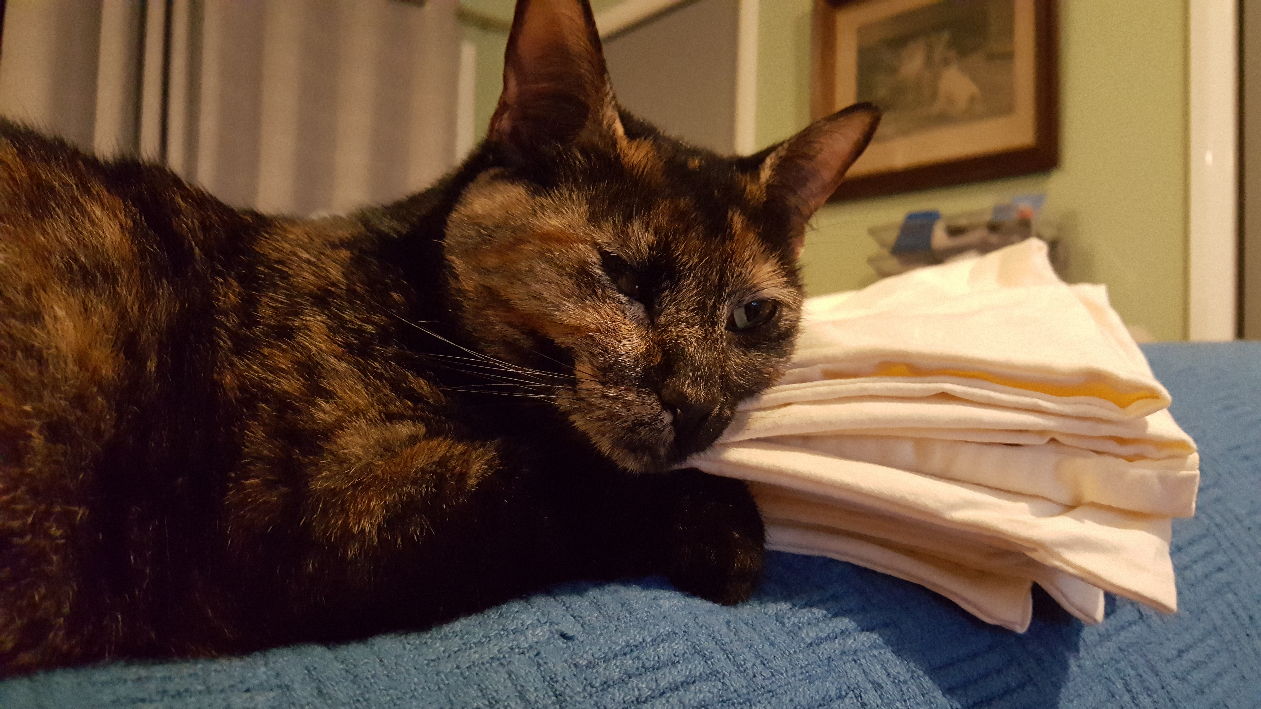 She is a gorgeous young cat (probably between 12-18months old) with a tortoiseshell coat and an amazing temperament. She adapted quickly to living with other adult cats and even let my cats be a part of her babies lives when they were newborns. She is still playful and loves spending time running around our garden. Pattie is so tolerant of other animals I don't think she would have any trouble fitting in to any household. If you are looking for a gorgeous tortie, let me know! :)