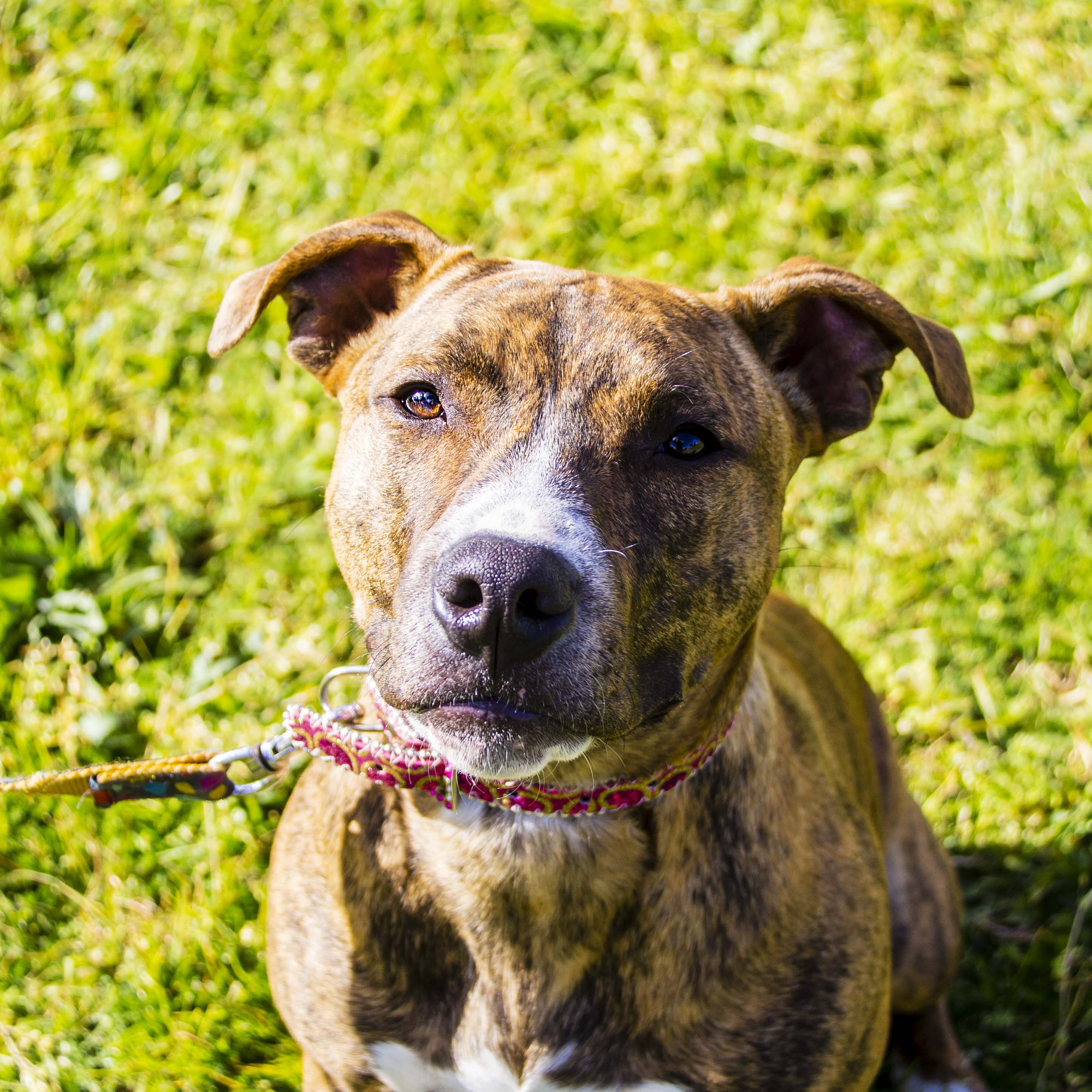 Luca is an 8 month old, female, Staffy x who will literally jump through hoops to get adopted! Luca attended a 4 lesson Tricks Class where she learned some awesome tricks such as crawl, bow, ring a bell, jump through a hoop, touch a magic wand, spin in a circle, and more! She already has good basic training such as "sit", "lie down", "stay" and she always comes when you call her. She walks nicely on lead (well, most of the time). She is a dream to train and responds very well to positive training!