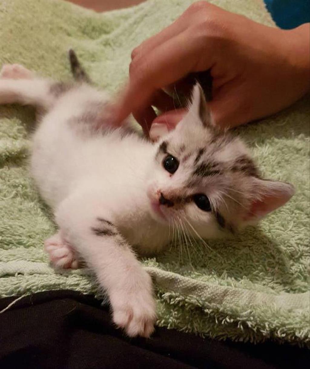 My mum was found with me and my 4 brothers and 2 sisters and we were all sent to my foster home where I made friends with many kids and James the cat and harry the dog who live there. Harry is only small and I scared him at first after I showed him my ninja moves but we have become good friends now. I am the most confident and social of my brothers and sisters. I absolutely love cuddles from everyone one stroke and I motor is running (purr purr purr). My foster parents work so we have the house to ourselves (PARTY!!!!!!). I am closest to my sister Lilly we look the same but I'm black and she is white. We love to play cuddle and sleep together. I would love to go to my new home with my sister. I love my Sis lots . I like to sit and watch the TV when my foster parents are chilling at night and I love the friskies fishing game on the IPad. Not the best at it but it's so much fun.