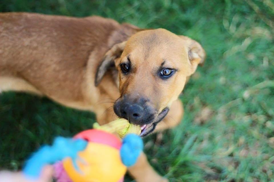 Despite my breed mix I am fine to live in town as long as you can take me for a run each day. It's as easy as taking me to the dog park! I love to run and play and roll around and if you do this for me I will be an angel at home. I am learning my name, and how to sit, wait, drop while in care.