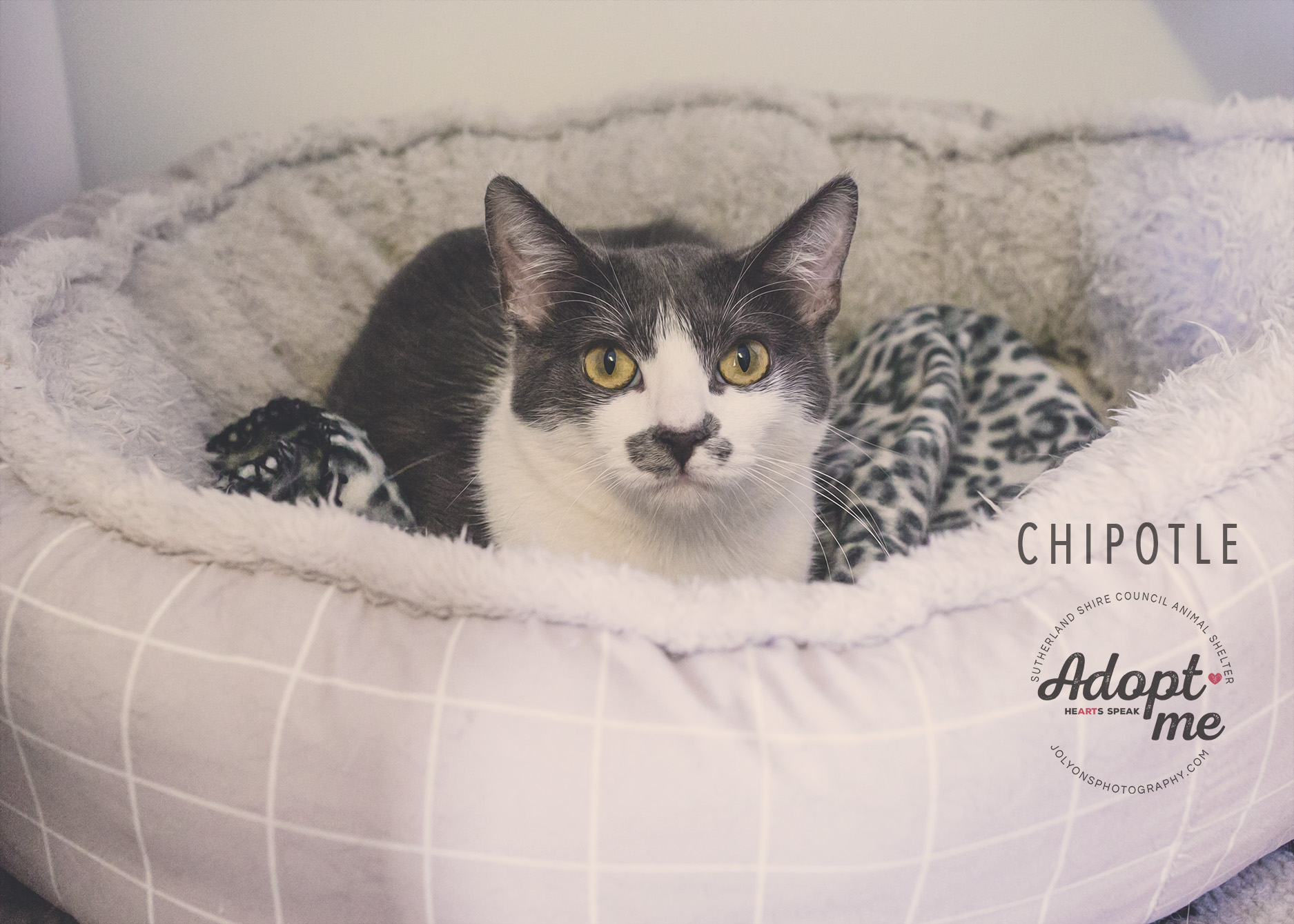 Chipotle is a grey and white beauty who is on the hunt for love. He is a cat that will need a patient and understanding home as he is quite timid and shy. Chipotle would probably do well with another cat in the house as he likes to interact with his housemate Cohen and snuggles up to her at night time. He is still slightly scared of people but with time, patience and lots of love we know he will come around to enjoy his time in the perfect home. Chipotle must be a strictly indoors only cat, if he is allowed to access the outdoors we are sure he will never be seen again, he is way too fearful and intimidated easily. Chipotle deserves a chance at love and a new life outside the shelter, will you be the one to give him this chance?
