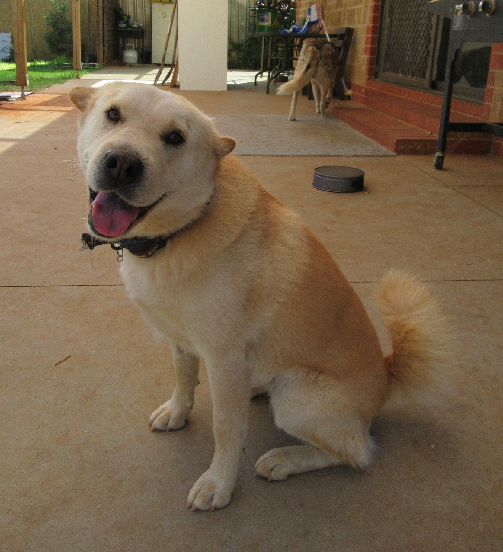 Weighing in at 16kgs Kit is definitely more Shar Pei sized than German Shepherd. She currently sleeps outside in a kennel with her doggy friends though she would love an indoor/outdoor lifestyle in her forever home with plenty of cuddles from her humans – she is toilet-trained. She is not a needy dog and will sit nicely waiting for affection, but if you take too long she might give you a gentle nudge and a lick (with her purple-spotted Shar Pei tongue!) when she really wants a pat.