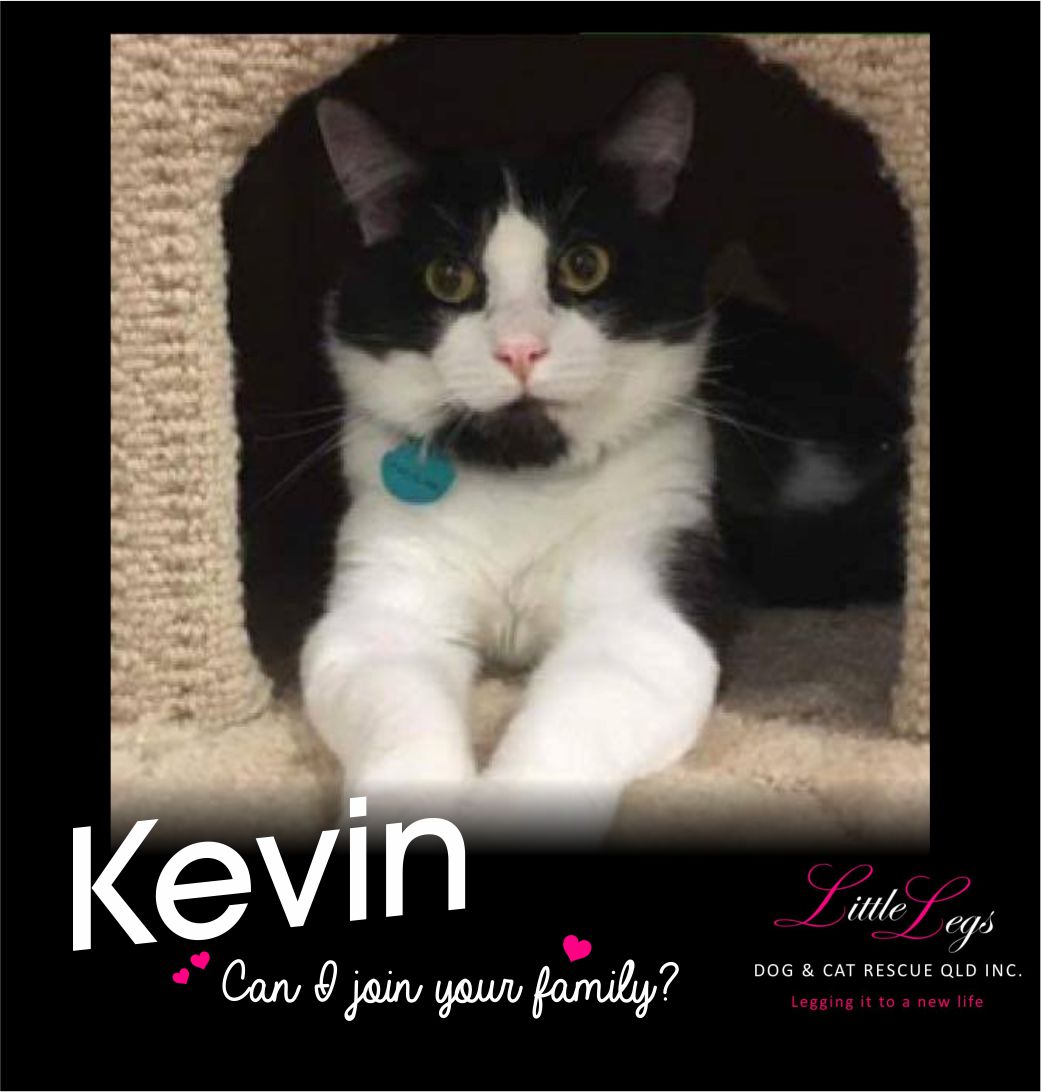 Kevin is an awesome kitty who is looking for his second chance at a forever home. He's a buddy who will sit and watch, or even join you for dinner if you let him.
