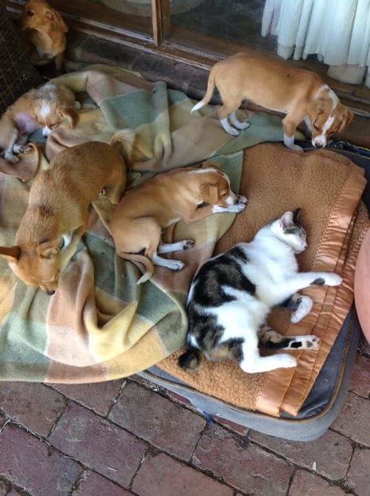 She is here with lots of dogs cats and kittens and thinks they are all wonderful.