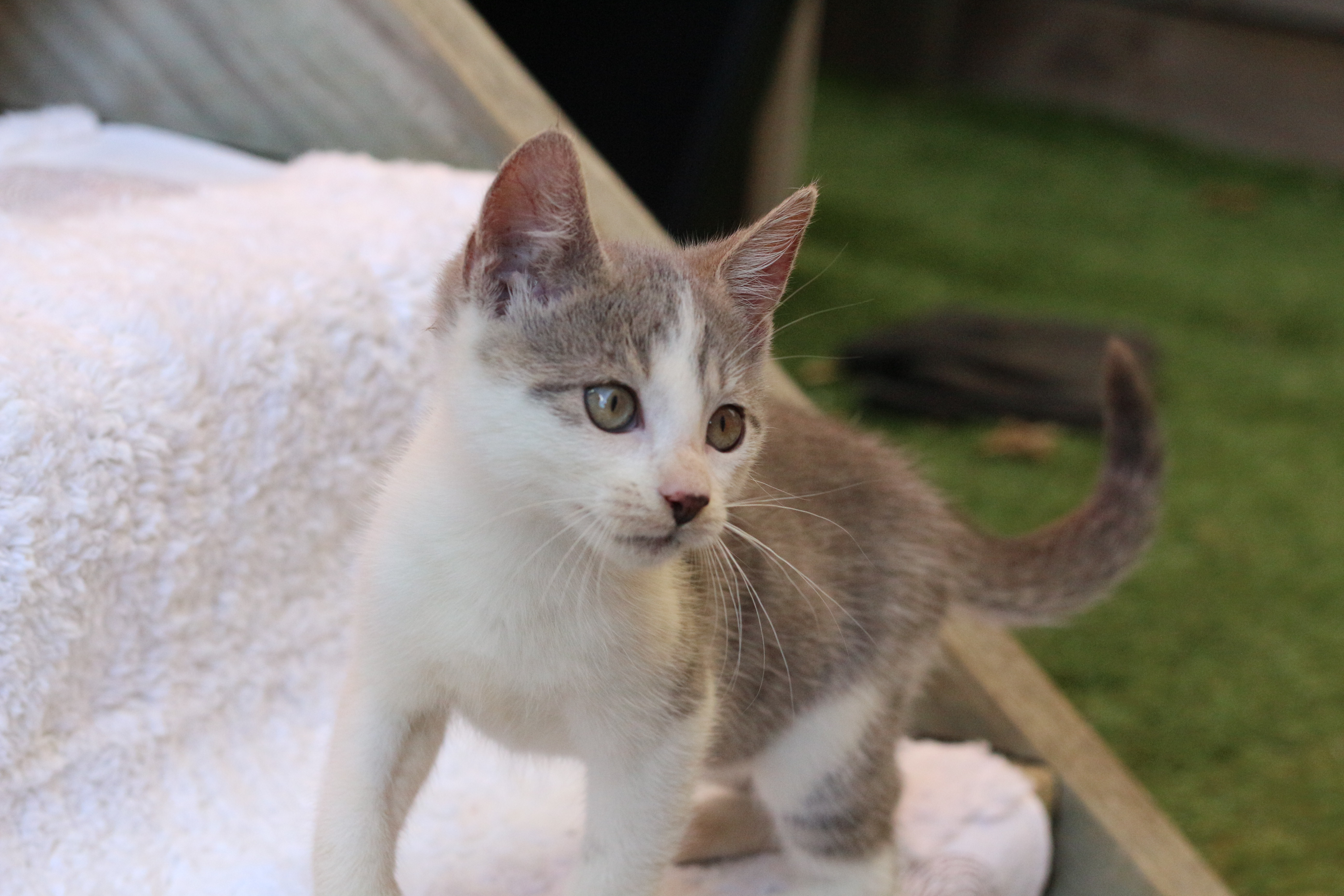 ABOUT ME: Hi I'm Lulu and I am a gorgeous grey and white kitten and I love hanging out with my two bros - Hank/King and Bailey. I am a girl who will take no crap from my brothers - lol!! I like nothing more than playing around with all the kittens at my foster carers and having a huge cuddle as well. I would love to be in a home with another cat or kitten or if you are looking for 2 kittens I would be jumping for joy if you took one of my siblings or kitten pals as well!!