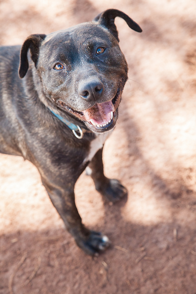 Marley was surrendered to us by a family in Woolgoolga, in the middle of November 2016. They were not sure whether she was pregnant or not and they did not want to find out or desex her. There were dogs living all around them and Marley would bark at them when they came near her. She had had a couple of litters already, her teats were enlarged so we were not sure but thought was highly likely that she was pregnant yet again. As all our dogs were desexed at that time we thought we would wait a couple of weeks to see if she started to swell or not. It did not take long for the pregnancy to be confirmed. The pups were born at the end of December just after Christmas. She had a lovely litter of staffy cross pups that will be smaller than she is and she is a staffy cross with something slimmer. She has a lovely friendly nature, gets on well with people and her four legged friends. She has just been desexed and is now ready to go to a new home.