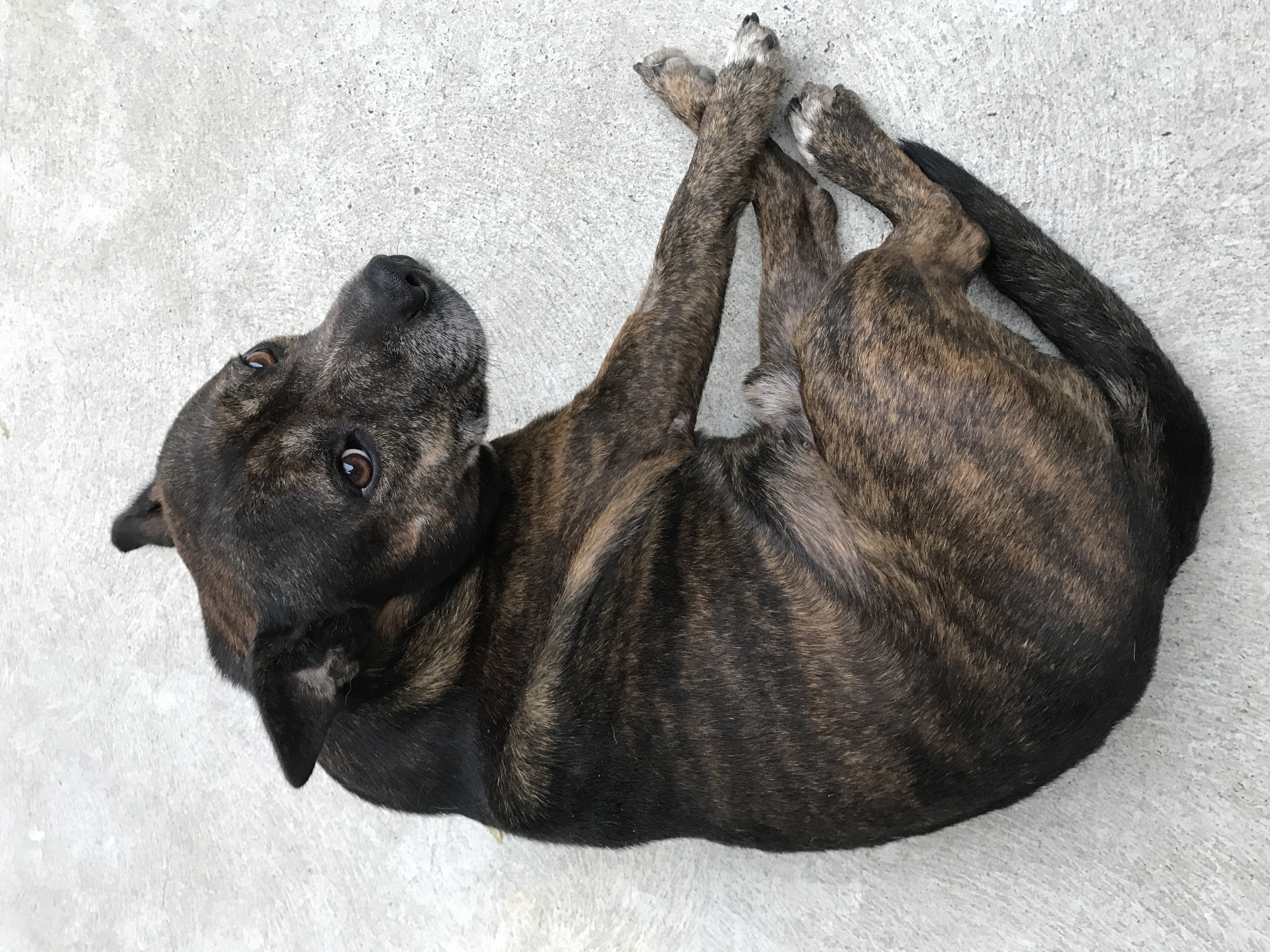 George is an awesome dude. He's super relaxed and easy going. Very low maintenance, you can leave him at home and not worry about him stressing or making noise or destroying things. He will walk on a loose lead. He sits, drops and shakes hands. Very clever and very mellow boy. He hops into his bedtime crate on a hand gesture, no words needed! He loves a good sunbake, and spends his days lazing around outside. George is an alpha male, best suited as an only dog. He does not like cats or entire male dogs. Seems better with females but not properly tested.