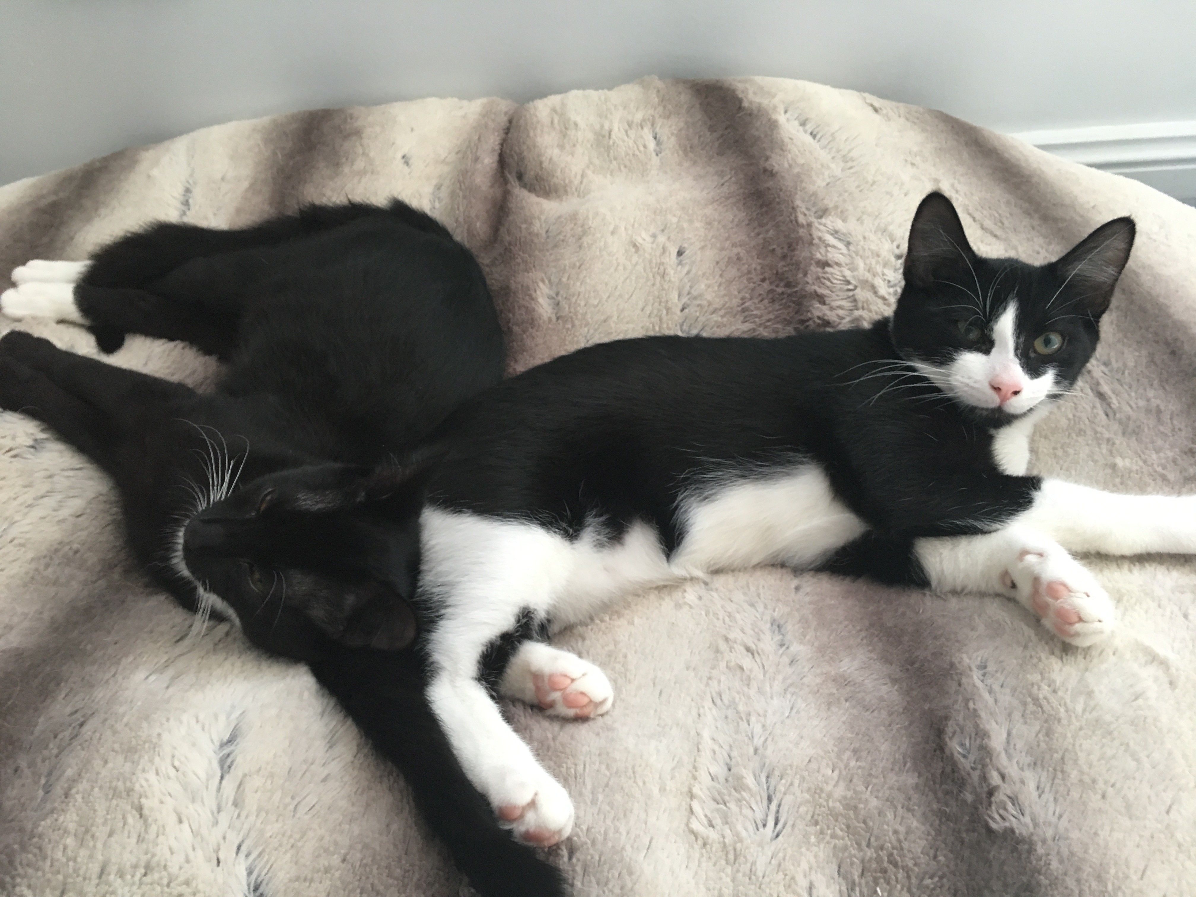 Both perfectly litter trained and well socialised with a calm adult dog and young adult cats. Low maintenance and chilled out!
