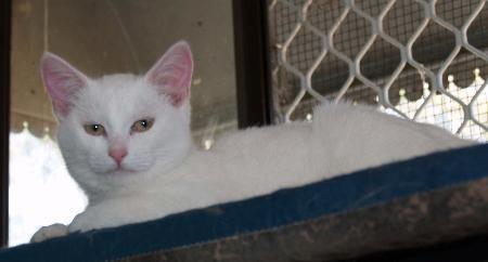 Snowdrop is a beautiful white teenage girl who we think is deaf. She will need to be an indoor only cat due to her colour and being deaf. She is extremely affectionate playful young cat with a lovely loud purr and personality to match. She gets on with other cats and kittens. She comes micro-chipped, de-sexed and immunised, wormed and de-flead